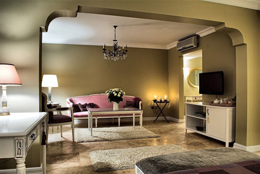 Udogodnienia biznesowe to ekspresowe zameldowanie, usługi pralni chemicznej oraz recepcja całodobowa. Płatne udogodnienia to transport z i na lotnisko (całą dobę). Dostępna jest także taka usługa jak bezpłatne parkowanie samodzielne. Do pokoju przylegają taras i ogród, z których roztacza się piękny widok. Dostępne są również takie udogodnienia rekreacyjne, jak basen odkryty. Ten hotel oferuje również udogodnienia takie jak bezpłatny bezprzewodowy dostęp do internetu i obsługa portierska. Za opłatą do dyspozycji gości jest wahadłowy autobus kursujący do pobliskich atrakcji. W obiekcie takim jak hotel do dyspozycji gości są restauracja, a także obsługa pokojowa (w określonych godzinach). Ożywcze napoje znajdziesz w jednym z lokali: bar/salon klubowy i bar przy basenie. Śniadanie w formie bufetu jest podawane codziennie od 8 do 10 za opłatą.- Opłata za śniadanie w formie bufetu: ok. 100 TRY za osobę dorosłą i 50 TRY za dziecko