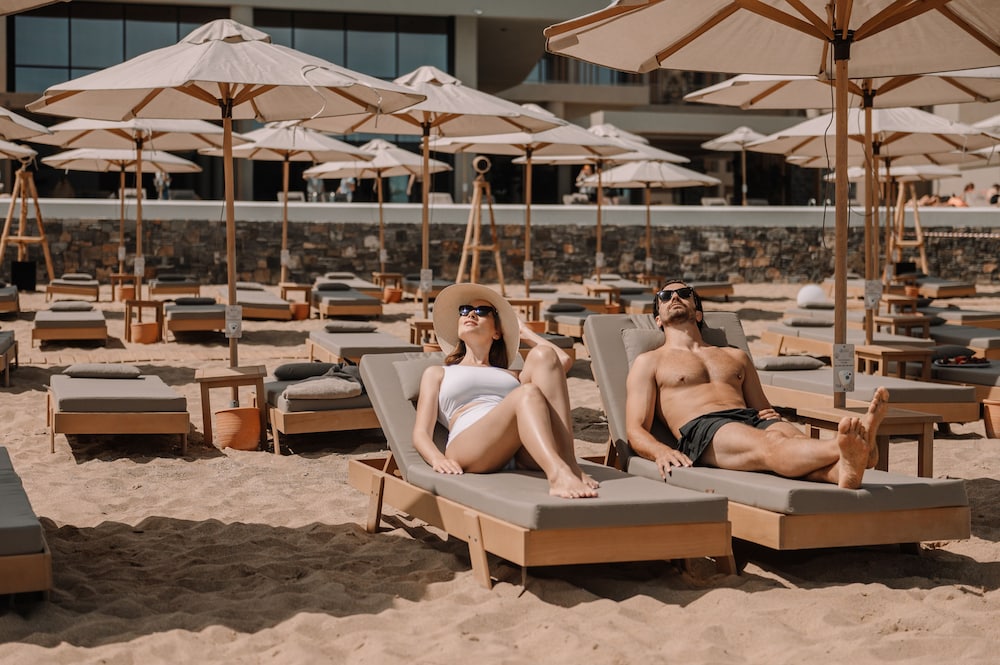 W czasie pobytu w obiekcie takim jak Unique Blue! Resort and Villas Adults Only w mieście Hersonissos zamieszkasz na plaży, 10 minut samochodem od atrakcji takich jak Port Heraklion i Muzeum Archeologiczne w Heraklionie. Ośrodek wczasowy (przy plaży) znajduje się 10,5 km od atrakcji takiej jak Pałac Knossos i 18,5 km od miejsca takiego jak Port w Hersonissos. Poczuj się jak w domu w 126 pokojach, których wyposażenie to minibar i telewizor płaskoekranowy. Wyposażenie łóżek to piankowy z pamięcią kształtu oraz pościel premium. Bezpłatny bezprzewodowy dostęp do internetu zapewni łączność ze światem, a telewizja satelitarna — rozrywkę. Wyposażenie łazienki: prysznic (prysznic z deszczownicą) i markowe przybory toaletowe. Udogodnienia biznesowe to całodobowe centrum biznesowe, wynajem limuzyn i samochodów oraz usługi pralni chemicznej. Udogodnienia na miejscu to bezpłatne parkowanie samodzielne. Zrelaksuj się w spa, które oferuje masaż. Dostępne udogodnienia rekreacyjne to łaźnia parowa, centrum fitness oraz sezonowy basen odkryty. Ten ośrodek wczasowy w stylu śródziemnomorskim oferuje udogodnienia takie jak bezpłatny bezprzewodowy dostęp do internetu, salon fryzjerski oraz telewizor w holu. Twój apetyt zaspokoi UB Restaurant, restauracja tuż przy basenie, gdzie możesz podziwiać widok na ocean i zjeść posiłek na świeżym powietrzu. Możesz także zostać w pokoju i skorzystać z obsługi pokojowej w określonych godzinach. Ożywcze napoje znajdziesz w jednym z lokali: bar plażowy, bar przy basenie i 2 bary/salony klubowe. Śniadanie w formie bufetu jest podawane codziennie od 7:30 do 10:30 za opłatą.