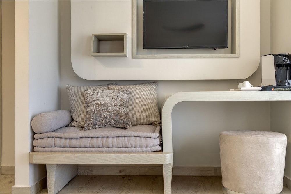 W czasie pobytu w obiekcie takim jak Kouros Art Hotel - Adults Only w mieście Naksos zamieszkasz niedaleko lotniska, 5 minut samochodem od atrakcji takiej jak Plaża Agios Prokopios i 6 minut od miejsca takiego jak Port w Naksos. Hotel znajduje się 6,5 km od atrakcji takiej jak Plaża Plaka i 37,1 km od miejsca takiego jak Port w Parikii. Poczuj się jak w domu w 18 pokojach, których wyposażenie to lodówka i telewizor płaskoekranowy. Bezpłatny bezprzewodowy dostęp do internetu zapewni łączność ze światem, a telewizja satelitarna — rozrywkę. Prywatna łazienka — wyposażenie: prysznic, markowe przybory toaletowe i suszarki do włosów. Udogodnienia obejmują telefon oraz sejfy i bezpłatna woda butelkowana. Odległości są podane z dokładnością do 0,1 kilometra.