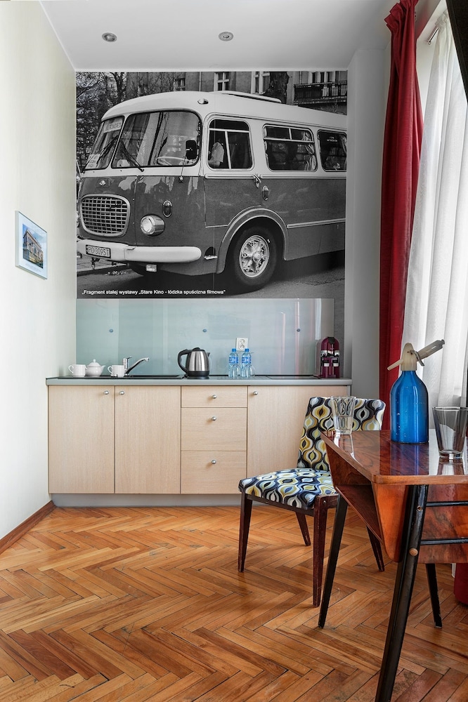W czasie pobytu w obiekcie takim jak Stare Kino Cinema Residence znajdziesz się w samym centrum miasta Łódź, bardzo blisko atrakcji takiej jak Ulica Piotrkowska i 5 minut piechotą od miejsca takiego jak Czerwona Wieża. Hotel znajduje się 0,8 km od atrakcji takiej jak Opera Łódzka i 0,8 km od miejsca takiego jak Muzeum Archeologiczne i Etnograficzne. Poczuj się jak w domu w 42 oryginalnie udekorowane pokojach, których wyposażenie to aneksy kuchenne (lodówka i płyta kuchenna). Bezpłatny bezprzewodowy dostęp do internetu zapewni łączność ze światem, a 50-cal. telewizor LCD i płatne kanały TV — rozrywkę. Udogodnienia obejmują sejfy i zestawy do parzenia kawy i herbaty oraz sprzątanie codziennie. Udogodnienia biznesowe to centrum biznesowe, recepcja całodobowa oraz personel wielojęzyczny. Jeżeli planujesz spotkanie w mieście Łódź, hotel oferuje centrum konferencyjne oraz sale konferencyjne o łącznej powierzchni 60 m kw. (646 stopy kwadratowe). Udogodnienia na miejscu to samodzielne parkowanie (za opłatą). Do pokoju przylega taras, z którego roztacza się piękny widok. Dostępne są również takie udogodnienia, jak bezpłatny bezprzewodowy dostęp do internetu i usługi weselne. Ten hotel oferuje również udogodnienia takie jak pomoc w organizacji biletów/wycieczek i sala bankietowa. W obiekcie takim jak hotel do dyspozycji gości są restauracja, a także obsługa pokojowa. Zrelaksuj się po całym dniu w barze/salonie klubowym. Śniadania w formie bufetu są podawane w dni powszednie od 7 do 10:30, a w weekendy od 8 do 11 za opłatą.