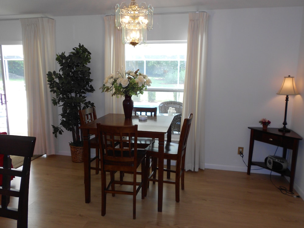 W czasie pobytu w obiekcie takim jak ten dom wakacyjny w mieście Inverness, znajdziesz się 9,3 km od miejsca takiego jak Park stanowy Fort Cooper i 30,4 km od atrakcji takiej jak Las stanowy Withlacoochee. Domek letniskowy (z polem golfowym) znajduje się 0,1 km od atrakcji takiej jak Lakeside Golf and Country Club i 4,6 km od miejsca takiego jak Park dla psów Bark Central. Oryginalnie udekorowane domek letniskowy sprawi, że poczujesz się jak w domu. kuchnia zapewnia dostęp to takich elementów wyposażenia, jak pełnowymiarowa lodówka i zamrażarka i kuchenka mikrofalowa. Bezpłatny przewodowy i bezprzewodowy dostęp do internetu zapewni łączność ze światem, a telewizja kablowa — rozrywkę. Oferowane udogodnienia to zestaw do parzenia kawy i herbaty i zmywarka i/lub suszarka oraz telefon (bezpłatne połączenia telefoniczne miejscowe). Odległości są podane z dokładnością do 0,1 kilometra.