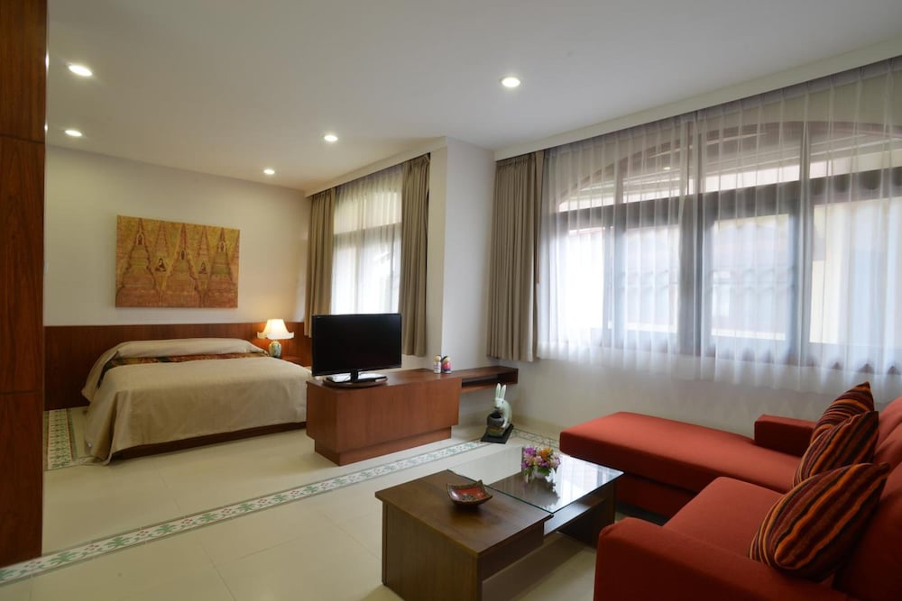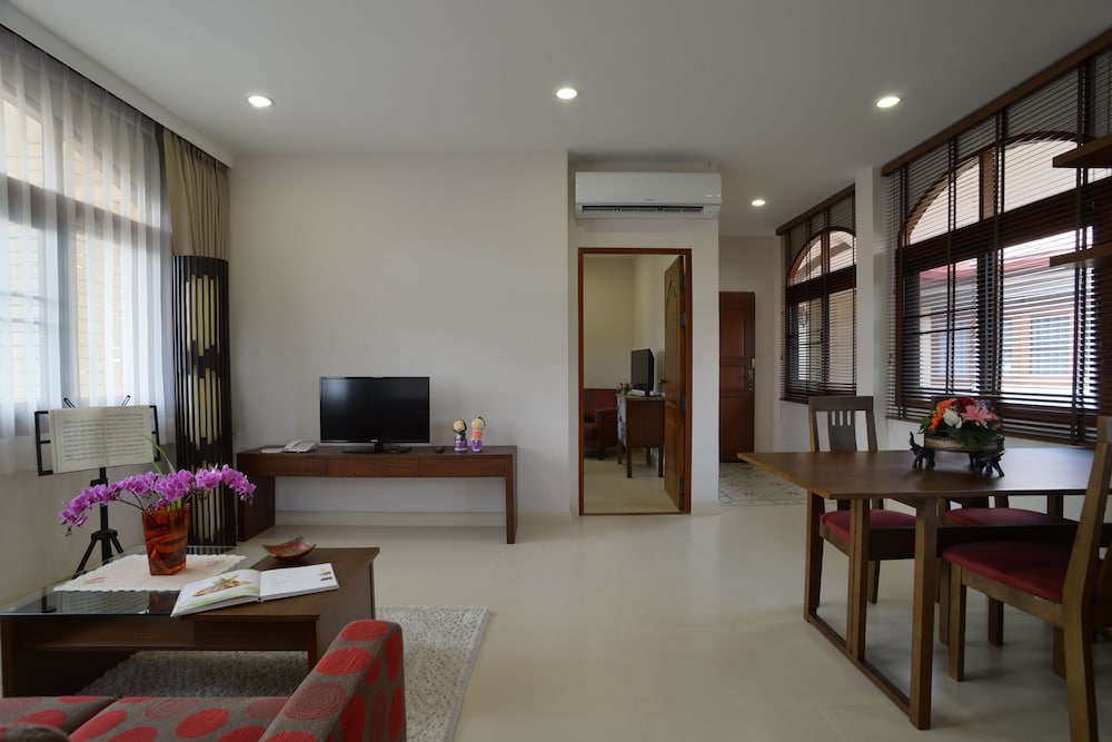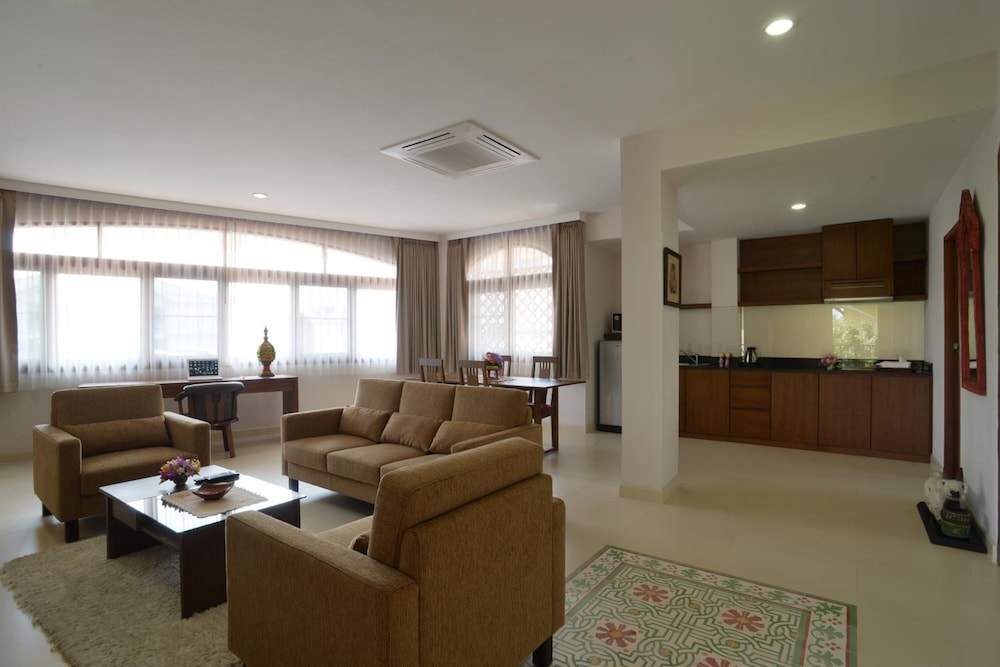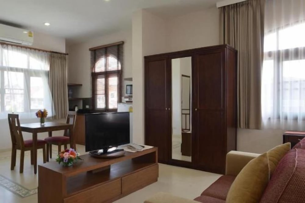 The Golden Wells Residence Chiang Mai znajduje się w mieście Chiang Mai (Stare Miasto), 15 minut piechotą od atrakcji takich jak Wat Phra Singh (świątynia) i Brama Tha Phae. Hotel znajduje się 1,8 km od atrakcji takiej jak Nocny bazar w Chiang Mai i 15,3 km od miejsca takiego jak Uniwersytet Maejo. Poczuj się jak w domu w 6 klimatyzowanych pokojach, których wyposażenie to aneksy kuchenne (lodówka i płyta kuchenna). Posiłki można przygotować we wspólnej kuchni. Bezpłatny bezprzewodowy dostęp do internetu zapewni łączność ze światem, a telewizor LED i kablowa — rozrywkę. Udogodnienia obejmują telefon oraz sejfy i biurka. Udogodnienia biznesowe to personel wielojęzyczny, przechowalnia bagażu oraz pralnia. Płatne udogodnienia to transport z i na lotnisko (na życzenie). Dostępna jest także taka usługa jak bezpłatne parkowanie samodzielne. Do pokoju przylegają taras i ogród, z których roztacza się piękny widok. Dostępne są również takie udogodnienia, jak bezpłatny bezprzewodowy dostęp do internetu. W obiekcie takim jak hotel do dyspozycji gości pozostają Ma-yom Tree i kawiarnia. Hotel oferuje bezpłatne śniadanie codziennie od 7:30 do 10:30.