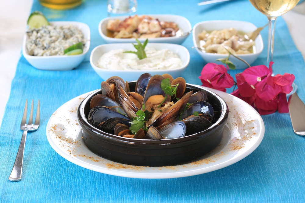 Udogodnienia biznesowe to ekspresowe zameldowanie, ekspresowe wymeldowanie oraz przechowalnia bagażu. Płatne udogodnienia to transport z i na lotnisko. Do pokoju przylegają taras i ogród, z których roztacza się piękny widok. Dostępne są również takie udogodnienia, jak bezpłatny bezprzewodowy dostęp do internetu. Ten hotel oferuje również takie udogodnienia jak obsługa portierska i grill. Spróbuj dań kuchni takiej jak owoce morza, które serwuje restauracja Tymnos Restaurant restauracja tuż przy plaży, gdzie możesz podziwiać widok na ocean i zjeść posiłek na świeżym powietrzu. Możesz także zostać w pokoju i skorzystać z obsługi pokojowej w określonych godzinach. Zrelaksuj się po całym dniu w barze/salonie klubowym. Hotel oferuje bezpłatne śniadanie w formie bufetu codziennie od 8 do 10. To miejsce jest nieczynne od 1 listopada do 20 kwietnia. Wtorek, czwartek, piątek, sobota i niedziela to dni, w które następujące udogodnienia są zamknięte:- Bar/salon