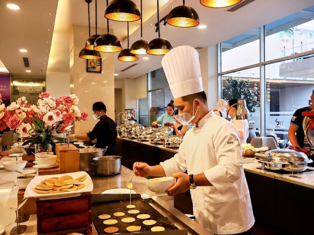 W czasie pobytu w obiekcie takim jak TTC Hotel - Michelia znajdziesz się w samym centrum miasta Nha Trang pięć minut samochodem od atrakcji takich jak Nocny targ w Nha Trang i Alexandre Yersin Museum. Hotel (przy plaży) znajduje się 0,5 km od atrakcji takiej jak Khanh Hoa Museum i 0,6 km od miejsca takiego jak Lotte Mart Nha Trang Gold Coast. Poczuj się jak w domu w 214 klimatyzowanych pokojach, których wyposażenie to minibar i telewizor LCD. Rozrywkę zapewni telewizja kablowa. Prywatna łazienka — wyposażenie: prysznic, bezpłatne przybory toaletowe i suszarki do włosów. Udogodnienia obejmują telefon oraz sejfy i biurka. Udogodnienia biznesowe to usługi pralni chemicznej, recepcja całodobowa oraz przechowalnia bagażu. Udogodnienia na miejscu to bezpłatne parkowanie samodzielne. Dostępne udogodnienia rekreacyjne to basen odkryty i centrum fitness. Ten hotel oferuje takie udogodnienia jak bezpłatny bezprzewodowy dostęp do internetu, obsługa portierska i usługi weselne. W obiekcie takim jak hotel do dyspozycji gości są restauracja, a także całodobowa obsługa pokojowa. Zrelaksuj się po całym dniu w barze przy basenie. Hotel oferuje bezpłatne śniadanie pełne codziennie od 6:30 do 9:30.