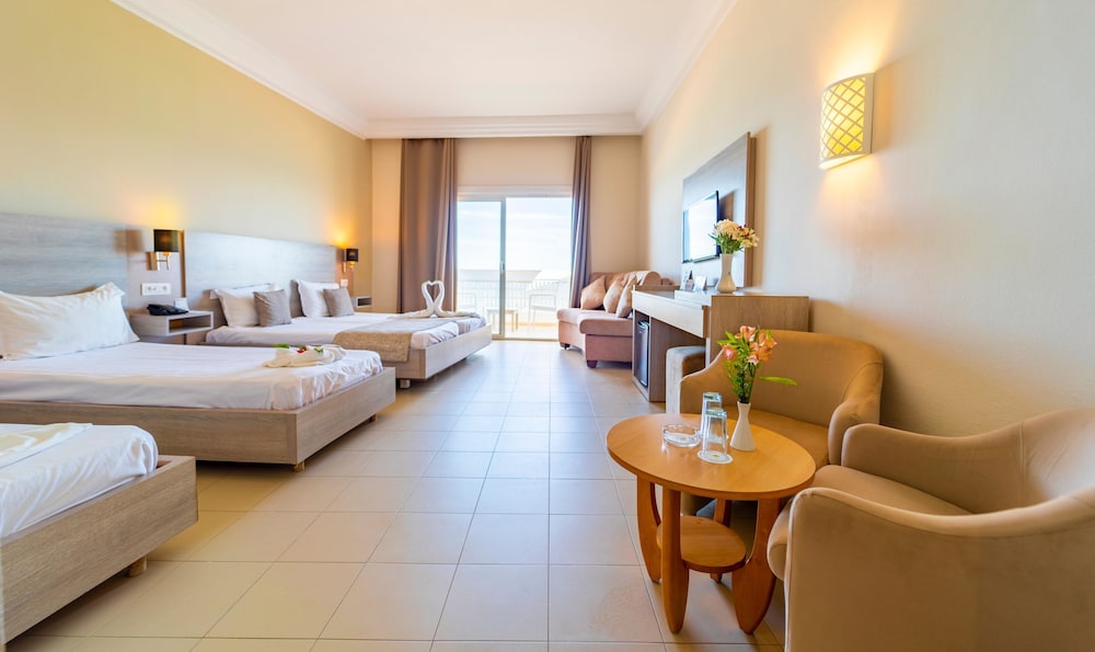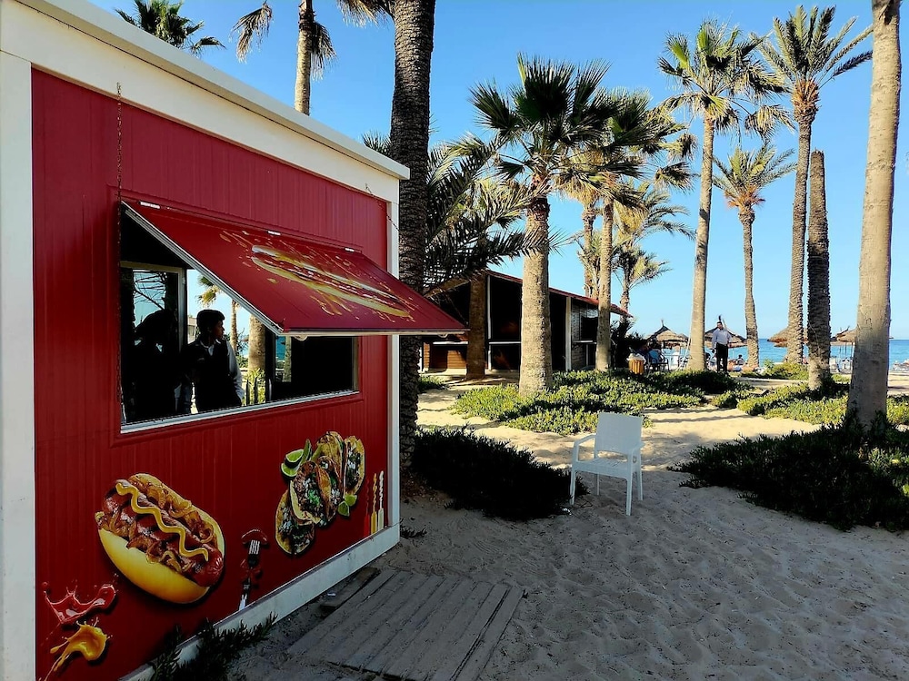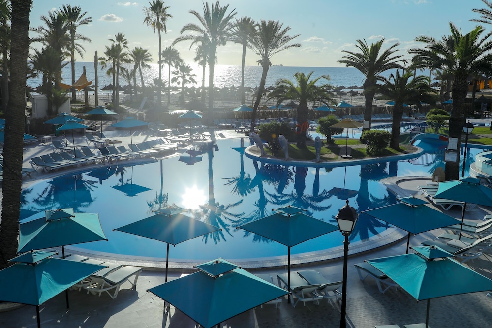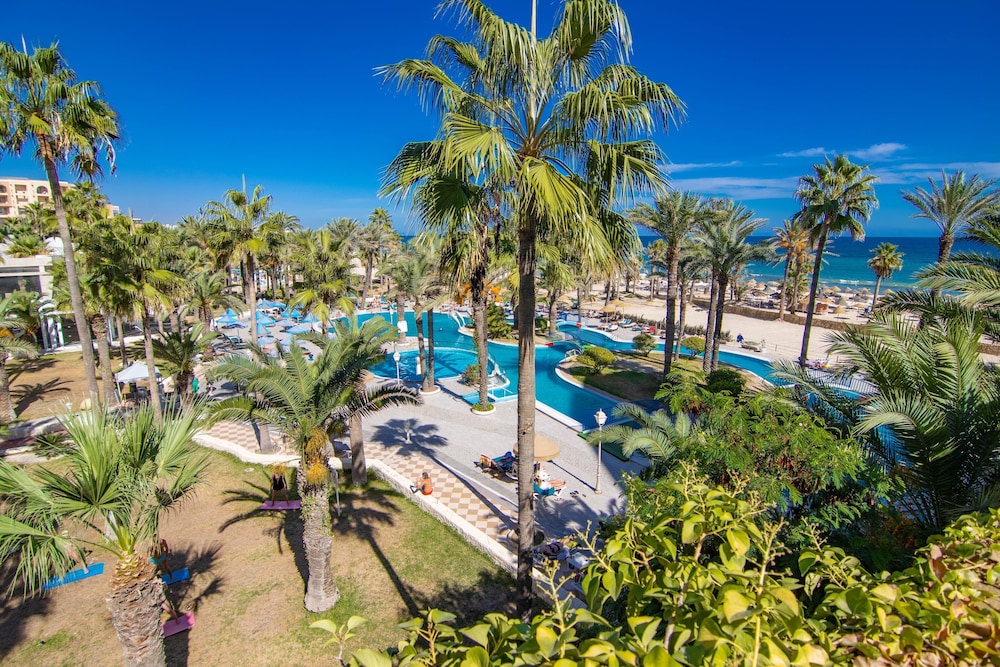 W czasie pobytu w obiekcie takim jak Riadh Palms Resort & Spa w mieście Sousse (Boujaafar) zamieszkasz w odległości pięciu minut piechotą od atrakcji takich jak Sousse Beach (plaża) i Nadmorska Promenada w Sousse. Hotel (przy plaży) znajduje się 2,4 km od atrakcji takiej jak Plaża Boujaffar i 2,6 km od miejsca takiego jak Casino Veneziano. Poczuj się jak w domu w 650 klimatyzowanych pokojach, których wyposażenie to minibar i telewizor płaskoekranowy. Do pokoju przylega umeblowany balkon. Bezpłatny bezprzewodowy dostęp do internetu zapewni łączność ze światem, a telewizja satelitarna — rozrywkę. Wyposażenie łazienki: wanna połączona z prysznicem i suszarki do włosów. Odległości są podane z dokładnością do 0,1 kilometra.