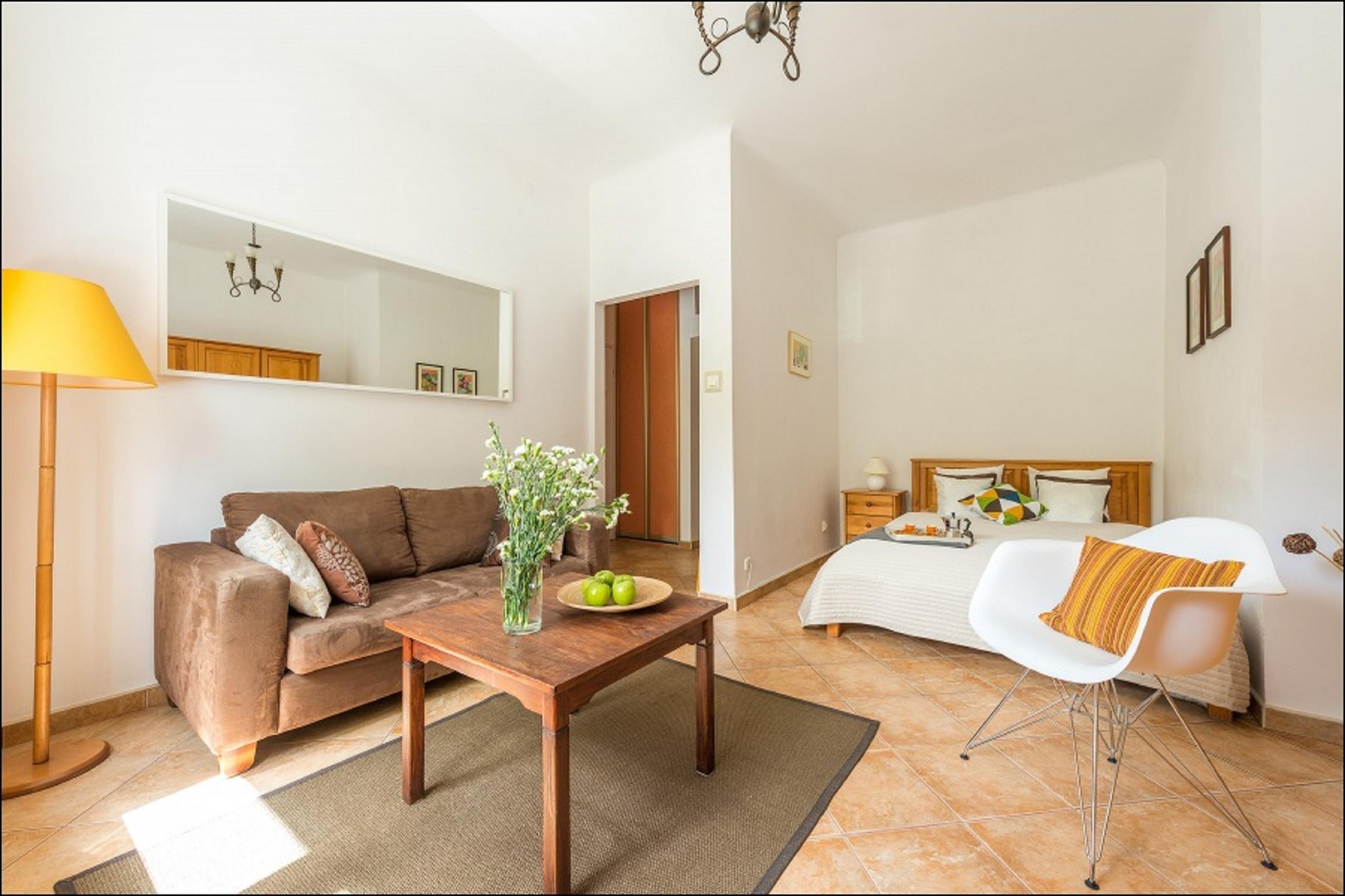 Apartament typu STUDIO w znakomitej lokalizacji w centrum Warszawy, pomidzy Placem Trzech Krzyy a Placem Zbawiciela, tu przy Trakcie Królewskim. Po ssiedzku Park Ujazdowski, azienki Królewskie, blisko do Nowego wiatu i Placu Trzech Krzyy. Mieszkanie na 1 pitrze, z wind, domofonem. Przestronna sypialnia z dwuosobowym ókiem, szaf na garderob. Moliwo dostawienia dodatkowego óka. Jest telewizja kablowa ASTER. cise centrum Warszawy w ssiedztwie ulicy Mokotowskiej, na której znajduje si szereg modnych restauracji, kawiarni, butików. Kilka minut spacerem do Placu Konstytucji i azienek Królewskich. Po ssiedzku Ambasada Czech, Ambasada USA, i wiele innych placówek dyplomatycznych. Apartament godny polecenia na pobyty turystyczne lub biznesowe w Warszawie, jest czysty, zadbany, wieo po remoncie.