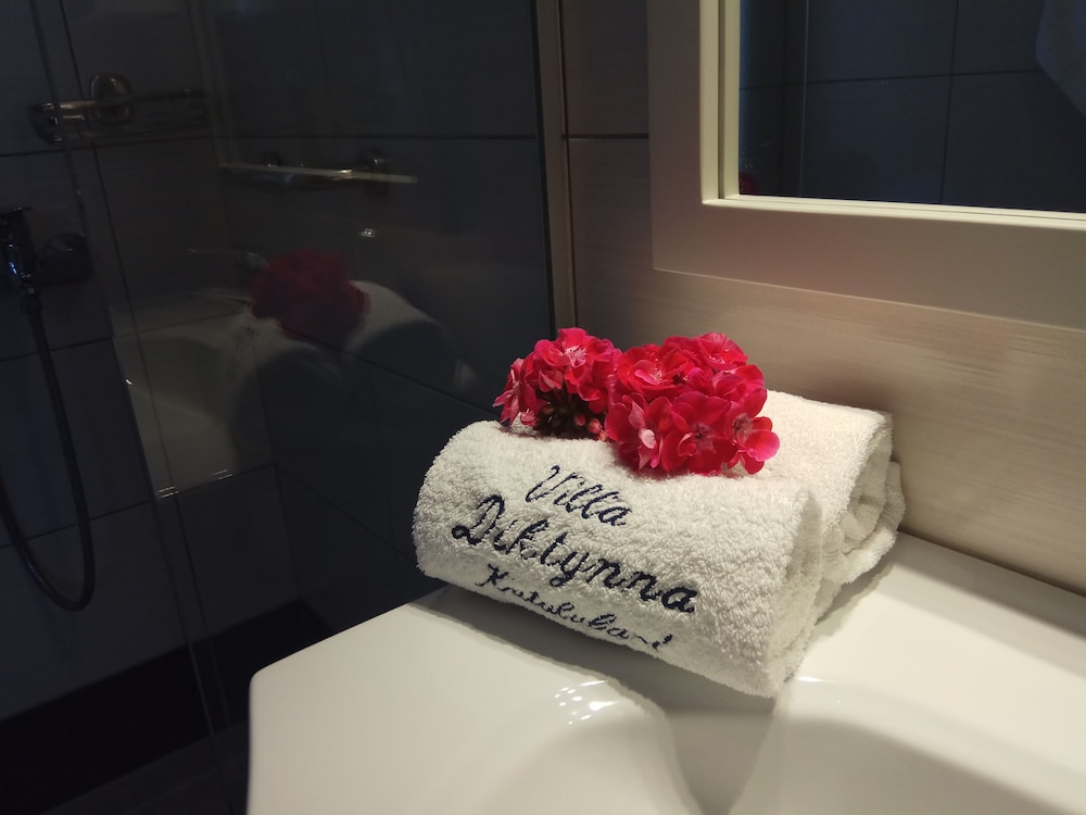 W czasie pobytu w obiekcie takim jak Villa Diktynna w mieście Hersonissos zamieszkasz pięć minut samochodem od atrakcji takich jak Park wodny Starbeach i Port w Hersonissos. Dom gościnny znajduje się 5,2 km od atrakcji takiej jak Plaża w Stalidzie i 1,9 km od miejsca takiego jak Lychnostatis. Poczuj się jak w domu w 21 oryginalnie udekorowane pokojach, których wyposażenie to kuchnie (lodówka i płyta kuchenna). Do pokoju przylega umeblowany balkon lub patio. Udogodnienia obejmują sejfy i biurka oraz sprzątanie na życzenie. Udogodnienia biznesowe to przechowalnia bagażu i sejf w recepcji. Płatne udogodnienia to transport z i na lotnisko (całą dobę). Dostępna jest także taka usługa jak bezpłatne parkowanie samodzielne. Do pokoju przylegają taras i ogród, z których roztacza się piękny widok. Dostępne są również takie udogodnienia rekreacyjne, jak sezonowy basen odkryty. Ten dom gościnny oferuje również udogodnienia takie jak bezpłatny bezprzewodowy dostęp do internetu i telewizor w holu. W obiekcie Villa Diktynna apetyt gości zaspokoi bar zakąskowy/delikatesy. Po całym dniu zrelaksujesz się w naszym barze/salonie klubowym lub barze przy basenie. Śniadanie kontynentalne jest podawane codziennie od 9 do południa za opłatą. To miejsce jest nieczynne od 21 października do 22 kwietnia.
