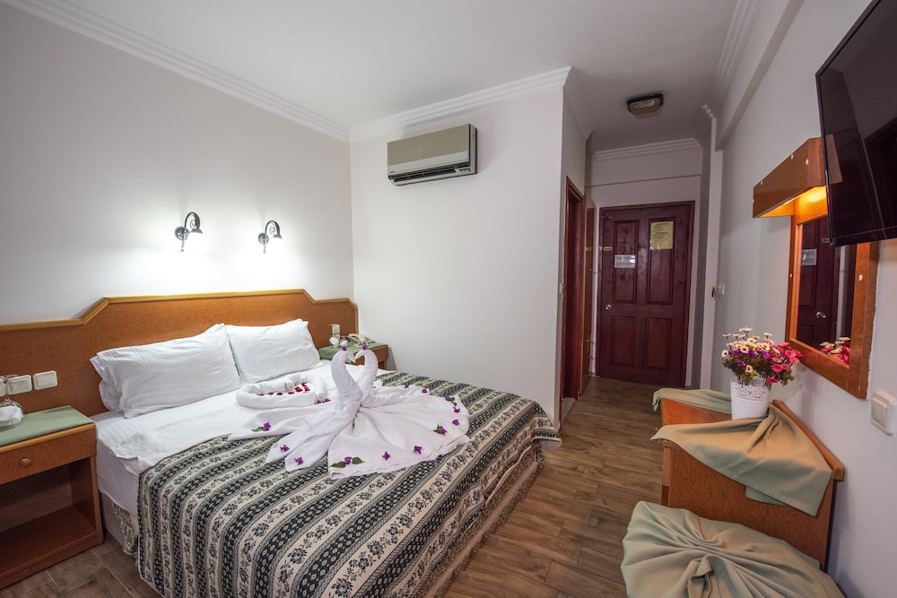 W czasie pobytu w obiekcie takim jak Belcehan Beach Hotel w mieście Fethiye (Centrum Ölüdeniz) zamieszkasz 10 minut piechotą od atrakcji takich jak Plaża Ölüdeniz i Park przyrody w Ölüdeniz. Hotel znajduje się 13,7 km od atrakcji takiej jak Marina w Fethiye i 17,6 km od miejsca takiego jak Plaża Çalış. Poczuj się jak w domu w 33 klimatyzowanych pokojach, których wyposażenie to lodówka i telewizor LCD. Do pokoju przylega balkon. Bezpłatny bezprzewodowy dostęp do internetu zapewni łączność ze światem, a telewizja satelitarna — rozrywkę. Wyposażenie łazienki: prysznic i suszarki do włosów. Udogodnienia biznesowe to centrum biznesowe, ekspresowe zameldowanie oraz ekspresowe wymeldowanie. Płatne udogodnienia to transport z i na lotnisko. Dostępna jest także taka usługa jak bezpłatne parkowanie samodzielne. Do pokoju przylegają taras i ogród, z których roztacza się piękny widok. Dostępne są również takie udogodnienia rekreacyjne, jak basen odkryty. Ten hotel oferuje również takie udogodnienia jak bezpłatny bezprzewodowy dostęp do internetu i pomoc w organizacji biletów/wycieczek. Hotel: znajduje się tutaj restauracja, gdzie serwowane są obiad i kolacja. Możesz zostać w pokoju i skorzystać z obsługi pokojowej w określonych godzinach. Po całym dniu zrelaksujesz się w naszym barze/salonie klubowym lub barze przy basenie. Hotel oferuje bezpłatne śniadanie w formie bufetu codziennie od 8 do 10.