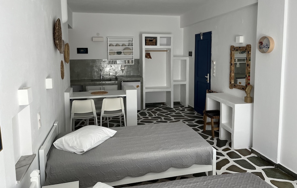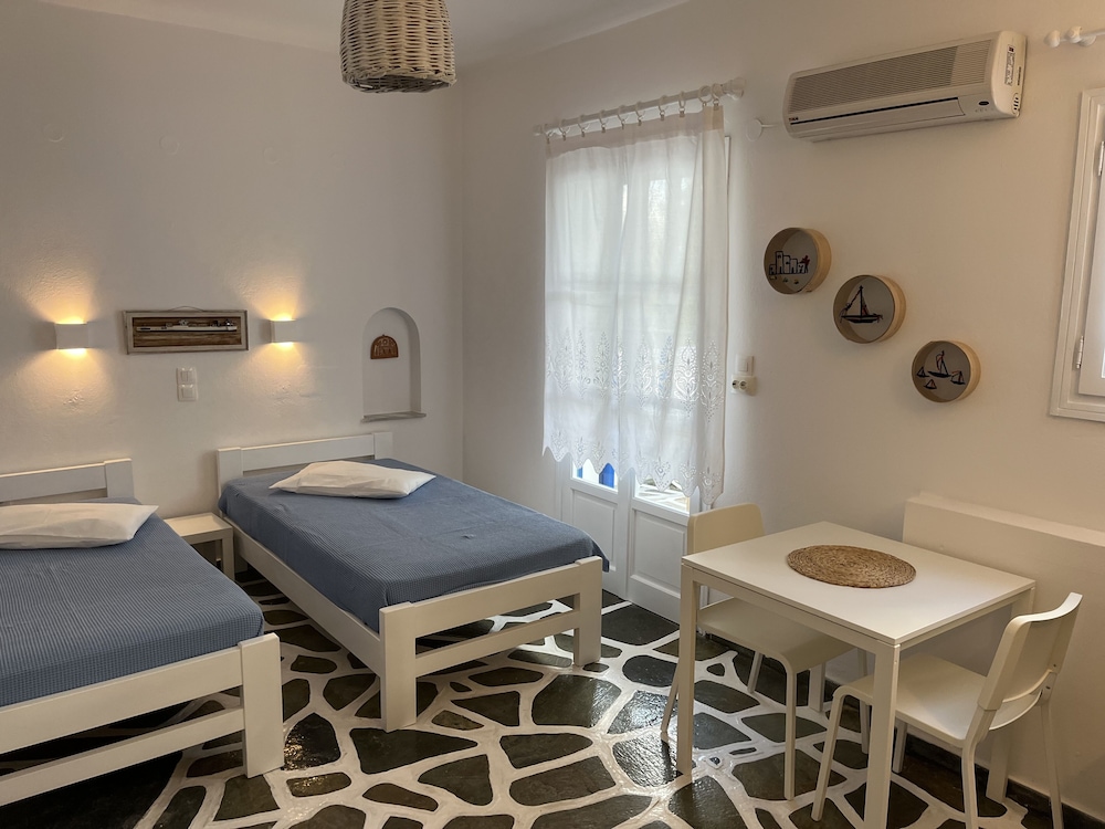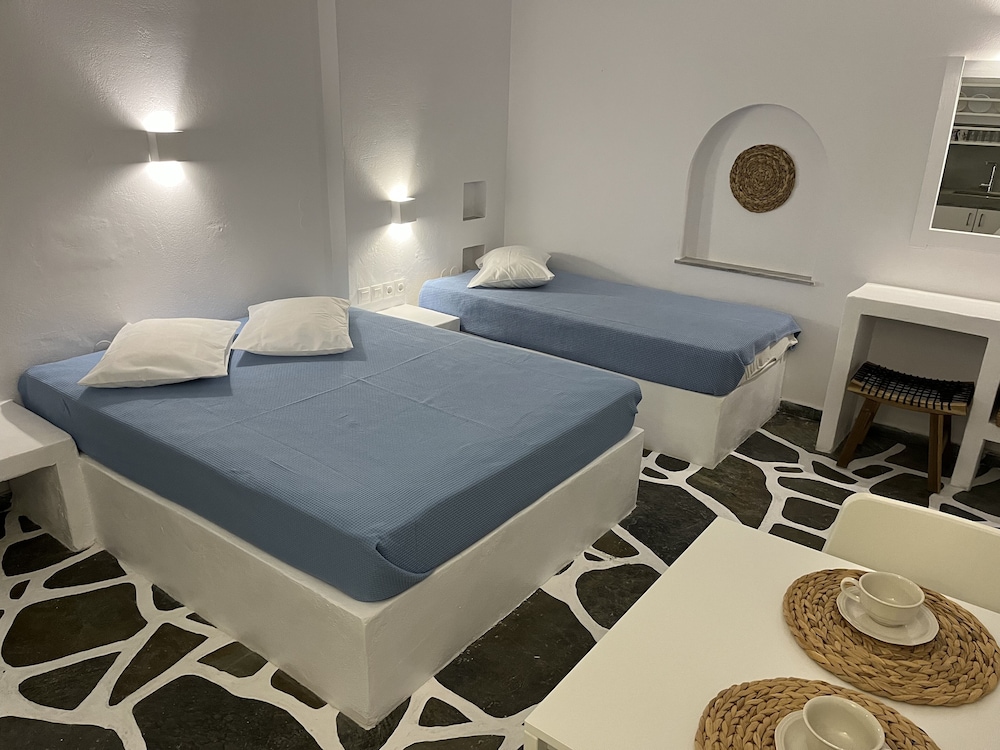 W czasie pobytu w obiekcie Angie's Studios znajdziesz się w samym centrum miasta takiego jak Paros, 2 minut samochodem od atrakcji takiej jak Port w Parikii i 12 minut samochodem od miejsca takiego jak Plaża Paralia Krios. Dom gościnny znajduje się 8,8 km od atrakcji takiej jak Plaża Paralia Kolimbitres i 12,1 km od miejsca takiego jak Plaża w Aliki. Poczuj się jak w domu w 6 klimatyzowanych pokojach, których wyposażenie to aneksy kuchenne (lodówka i płyta kuchenna). Wyposażenie łóżek to piankowy z pamięcią kształtu oraz pościel z egipskiej bawełny. Do pokoju przylega umeblowany balkon. Bezpłatny bezprzewodowy dostęp do internetu zapewni łączność ze światem, a 22-cal. telewizor płaskoekranowy i telewizja cyfrowa — rozrywkę. Odległości są podane z dokładnością do 0,1 kilometra.
