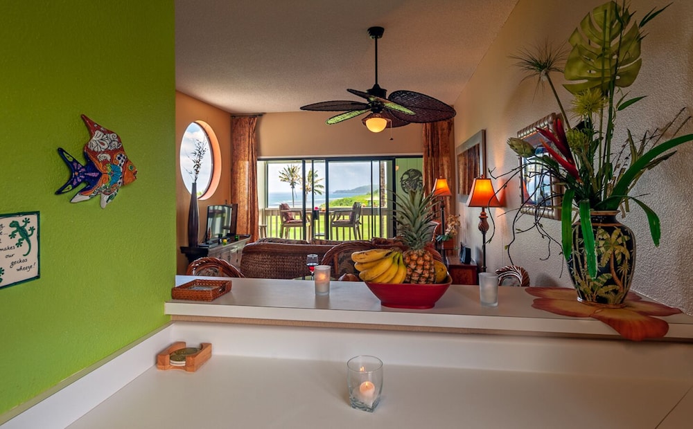 W czasie pobytu w obiekcie takim jak to mieszkanie w mieście Princeville znajdziesz się przy polu golfowym, pięć minut samochodem od atrakcji takich ja Island Sails i Klub golfowy Princeville Makai. Kondominium (z polem golfowym) znajduje się 1,8 km od atrakcji takiej jak Plaża Sealodge i 2 km od miejsca takiego jak Centrum handlowe Princeville Center. Mieszkanie z klimatyzacją oddaje do dyspozycji gości takie elementy wyposażenia jak stacja dokująca do odtwarzaczy MP3, by możliwie uprzyjemnić pobyt. Do prywatnego użytku gości jest także balkon. Wyposażenie łazienki (wanna lub prysznic) to markowe przybory toaletowe.Oferowane udogodnienia to zestaw do parzenia kawy i herbaty i zmywarka i/lub suszarka. Odległości są podane z dokładnością do 0,1 kilometra.