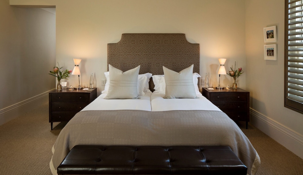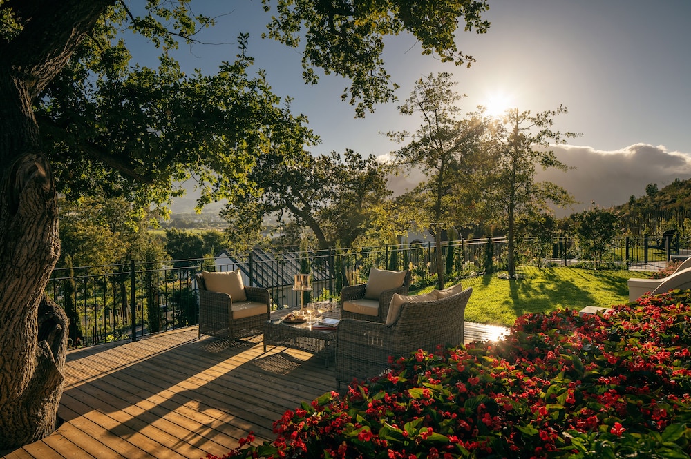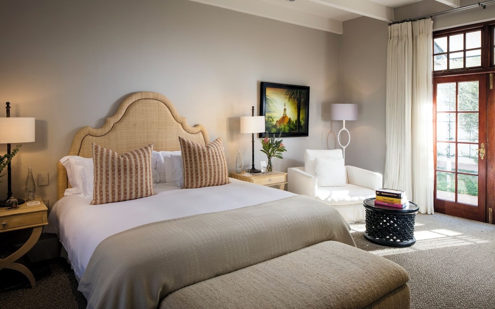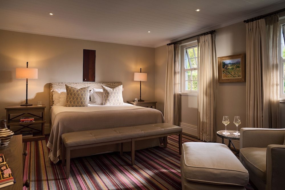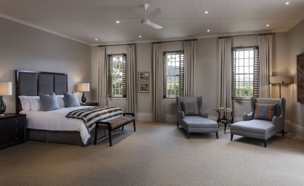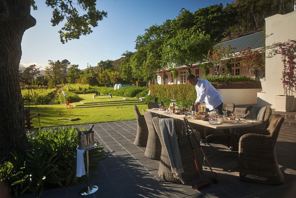 W czasie pobytu w obiekcie takim jak Leeu Estates w mieście Franschhoek znajdziesz się w górach, pięć minut samochodem od atrakcji takich ja Mont Rochelle Wine Estate i Tramwaj winny Franschhoek. Hotel (w stylu luksusowym) znajduje się 1,5 km od atrakcji takiej jak Ratusz w Franschhoek i 1,6 km od miejsca takiego jak Galeria sztuki Franschhoek Art House. Poczuj się jak w domu w 23 pokojach, których wyposażenie to bezpłatny minibar i ekspres do kawy. Bezpłatny bezprzewodowy dostęp do internetu zapewni łączność ze światem, a 42-cal. telewizor plazmowy i telewizja cyfrowa — rozrywkę. Wyposażenie łazienki: wanny lub prysznice (prysznic z deszczownicą) i bezpłatne przybory toaletowe. Udogodnienia obejmują sejfy i biurka oraz telefon (bezpłatne połączenia telefoniczne miejscowe). Udogodnienia biznesowe to usługi pralni chemicznej, recepcja całodobowa oraz przechowalnia bagażu. Ten obiekt typu hotel zapewnia udogodnienia konferencyjne takie jak centrum konferencyjne i sala konferencyjna. Płatne udogodnienia to transport z i na lotnisko (całą dobę). Dostępna jest także taka usługa jak bezpłatne parkowanie przez obsługę. Zrelaksuj się w spa, które oferuje masaż, zabiegi na ciało i zabiegi na twarz. Dostępne udogodnienia rekreacyjne to lokalna winnica, basen odkryty oraz łaźnia parowa. Ten hotel oferuje również udogodnienia takie jak bezpłatny bezprzewodowy dostęp do internetu, obsługa portierska i salon fryzjerski. Zjedz coś w restuaracji Le chene jednej z 2 restauracji w obiekcie takim jak hotel's lub zostań w pokoju i skorzystaj z całodobowej obsługi pokojowej. Ożywcze napoje znajdziesz w jednym z lokali: bar/salon klubowy. Hotel oferuje bezpłatne śniadanie pełne codziennie od 7 do 11. Jakość oceniona przez Tourism Grading Council of South Africa (TGCSA) – oficjalną organizację ds. kontroli jakości w Republice Południowej Afryki.