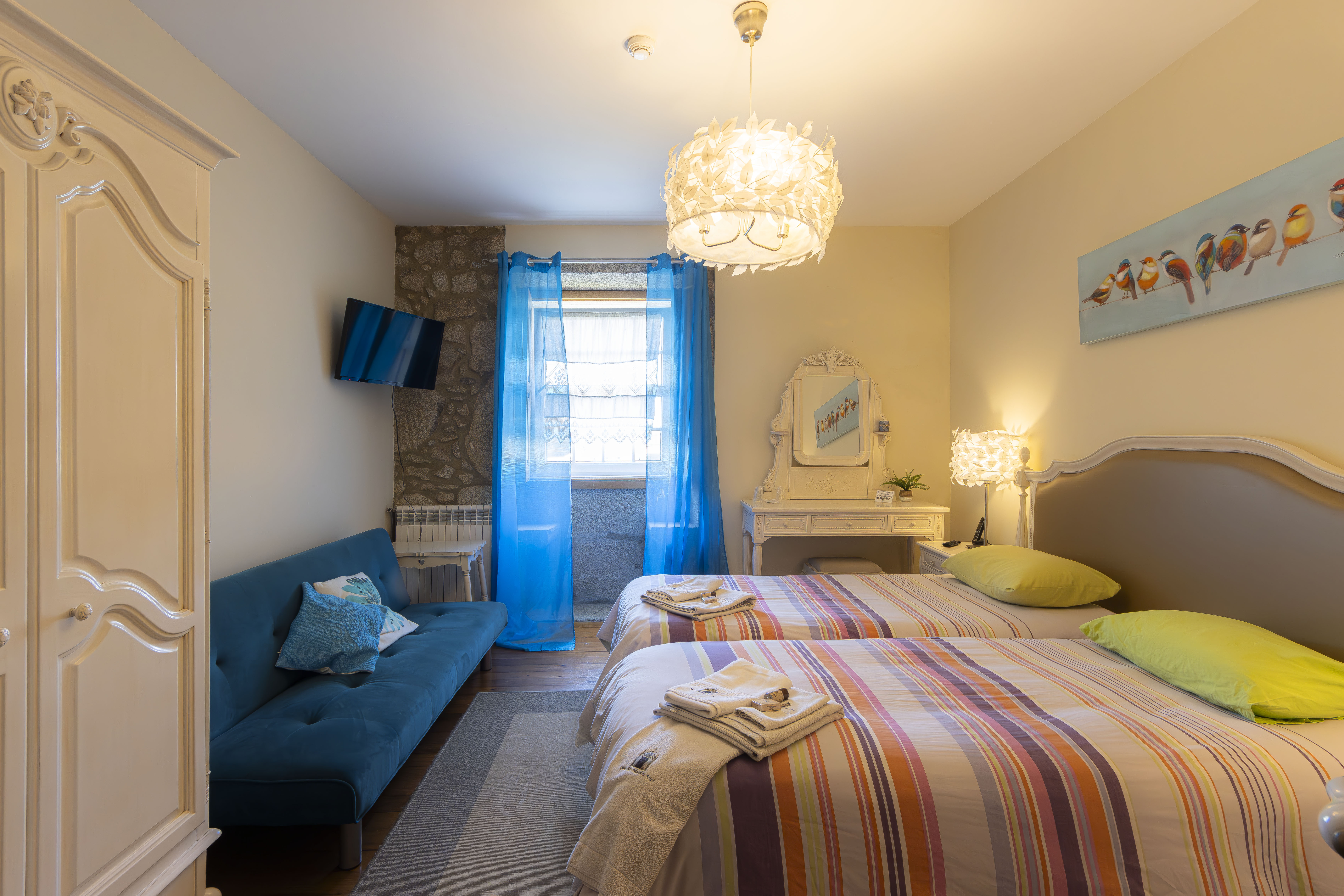 Ten rodzinny pensjonat znajduje si zaledwie kilka minut jazdy samochodem od wanych centrów i miast, a jednoczenie jest pooony w otoczeniu wiejskiego, naturalnego pikna, co pozwala na przeycie naprawd wyjtkowych wakacji. Do transportu publicznego jest okoo 1 km, a do lotniska Francisco Sá Carneiro okoo 15 km. Ten pikny i uroczy hotel jest harmonijnie wkomponowany w otaczajcy krajobraz, oferujc komfortowe, nowoczesne zakwaterowanie z dala od utartych szlaków. Z 7 pokojami w wspaniaym, rustykalnym domu z XVIII wieku, odnowionym w 2010 roku, gocie hotelu mog liczy na rónorodne usugi na bardzo wysokim poziomie, zarówno pod wzgldem jakoci, jak i yczliwoci. Hotel dysponuje holem, sal gier, salonem telewizyjnym oraz salami niadaniow i restauracyjn. Gocie mog korzysta z bezprzewodowego dostpu do Internetu za dodatkow opat. Dostpna jest równie usuga prania, a gocie przyjedajcy samochodem mog bezpatnie korzysta z parkingu. Na miejscu mona wypoyczy rowery. Pokoje wyposaone s w azienk z prysznicem i wann. Dodatkowe udogodnienia obejmuj telewizor, dostp do Internetu, minibar i centralne ogrzewanie. Hotel oferuje odkryty basen. W odlegoci okoo 15 km znajduje si pole golfowe. Hotel dysponuje rustykaln sal, w której serwowane jest niadanie w formie bufetu, a wieczorem obiad, oferujc spokojne miejsce z dala od stresu. Jadc A28/IC1, naley zjecha zjazdem Famalicão/Guimarães, a po 50 m zjecha z autostrady na Touguinhó/Beiriz. Na rondzie naley jecha prosto na Touguinhó/Beiriz. Na nastpnym rondzie naley zjecha zjazdem na Rio Mau. Po miniciu Rio Mau naley skrci w prawo na Arcos/Turismo Rural i jecha 1, 5 km. Jadc A3, naley zjecha zjazdem Famalicão/A7, kontynuowa jazd A7 przez okoo 15 km i zjecha zjazdem Rio Mau/Junqueira. Na rondzie naley skrci w prawo na Rio Mau i jecha 3 km.
