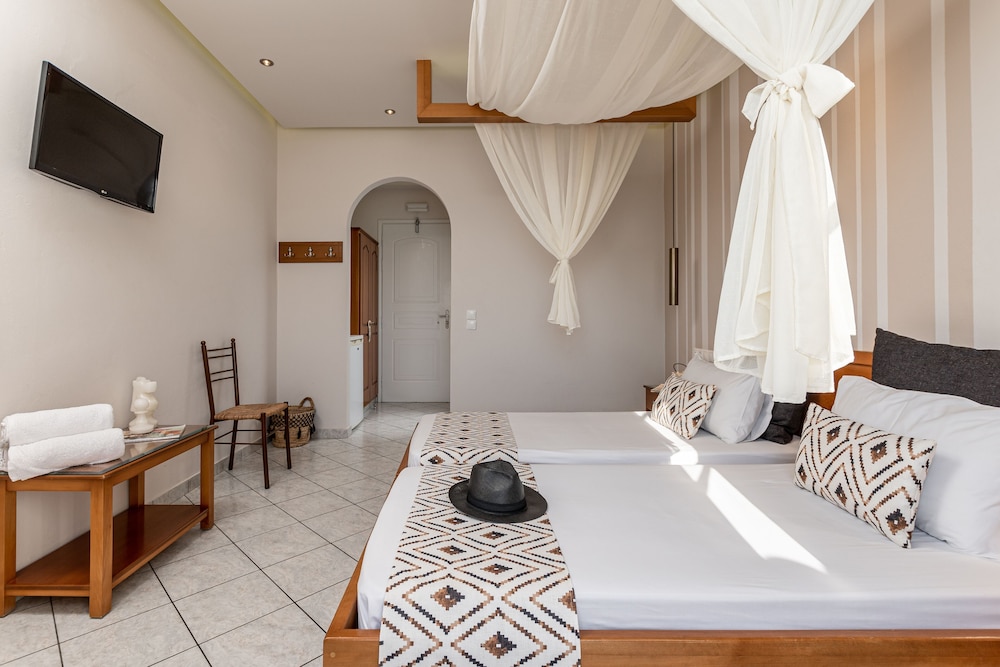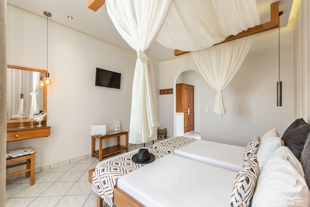 W czasie pobytu w obiekcie takim jak Hotel Palatia w mieście Naksos, znajdziesz się 11 minut spacerem od miejsca takiego jak Port w Naksos. Hotel (przy plaży) znajduje się 0,4 km od atrakcji takiej jak Plaża Agios Georgios i 6,8 km od miejsca takiego jak Plaża Plaka. Poczuj się jak w domu w 13 pokojach, których wyposażenie to lodówka i telewizor LCD. Do pokoju przylega umeblowany balkon lub patio. Bezpłatny bezprzewodowy dostęp do internetu zapewni łączność ze światem, a telewizja satelitarna — rozrywkę. Wyposażenie łazienki: prysznic (prysznic z deszczownicą) i bezpłatne przybory toaletowe. Odległości są podane z dokładnością do 0,1 kilometra.