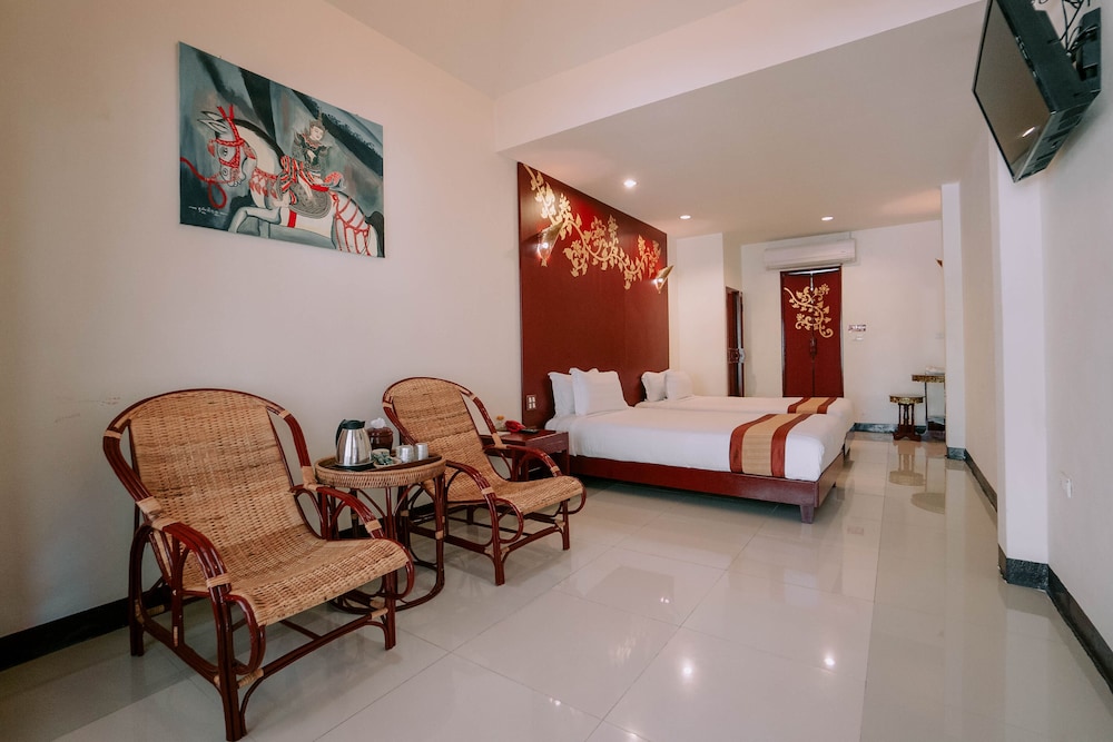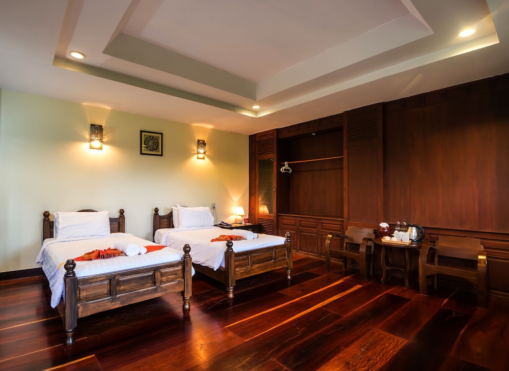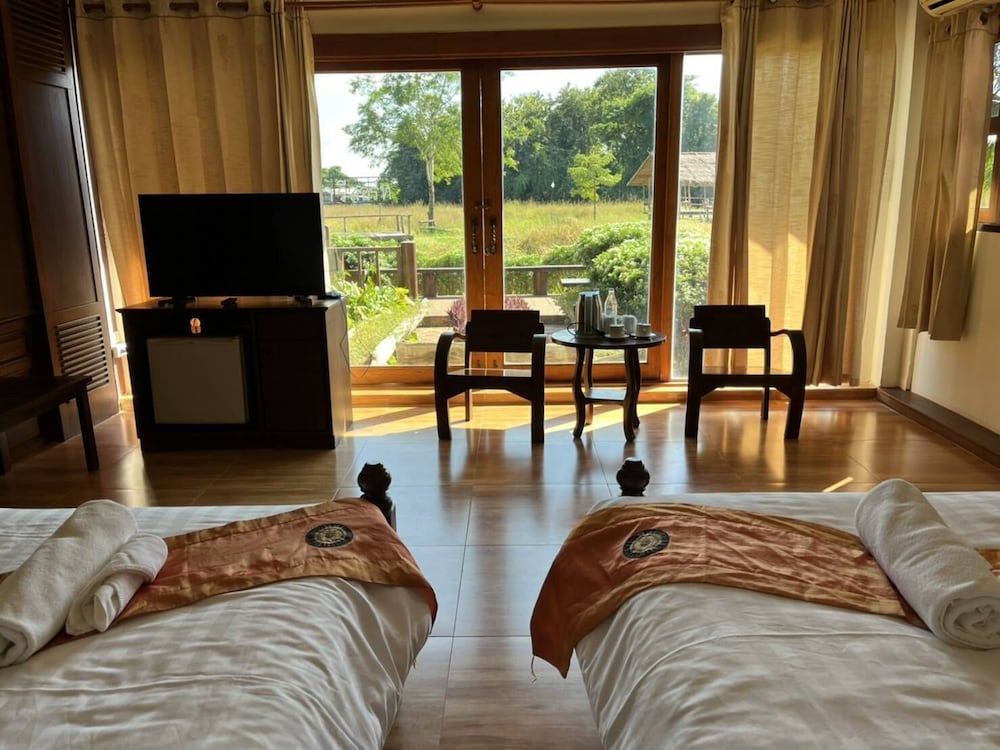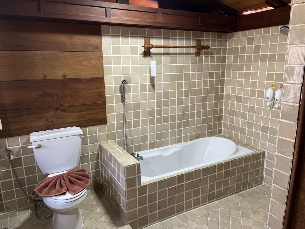 W czasie pobytu w obiekcie takim jak Sasidara Resort Nan w mieście Nan znajdziesz się niedaleko lotniska pięć minut samochodem od atrakcji takich jak Świątynia Wat Si Phan Ton i Świątynia Ming Muang. Hotel znajduje się 1,6 km od atrakcji takiej jak Świątynia Wat Phra That Khao Noi i 2,5 km od miejsca takiego jak Khuang Muang. Poczuj się jak w domu w 44 klimatyzowanych pokojach, których wyposażenie to lodówka. Bezpłatny bezprzewodowy dostęp do internetu zapewni łączność ze światem, a telewizja kablowa — rozrywkę. Wyposażenie łazienki: wanna połączona z prysznicem, bezpłatne przybory toaletowe i suszarki do włosów. Udogodnienia obejmują telefon oraz zestawy do parzenia kawy i herbaty i bezpłatna woda butelkowana. Udogodnienia biznesowe to komputer stacjonarny, usługi pralni chemicznej oraz recepcja całodobowa. Jeżeli planujesz spotkanie w mieście Nan, hotel oferuje pomieszczenia konferencyjne oraz 2 sale konferencyjne o łącznej powierzchni 190 m kw. (2045 stopy kwadratowe). Udogodnienia na miejscu to bezpłatne parkowanie samodzielne. Do pokoju przylegają taras i ogród, z których roztacza się piękny widok. Dostępne są również takie udogodnienia rekreacyjne, jak basen odkryty. Ten hotel oferuje udogodnienia takie jak bezpłatny bezprzewodowy dostęp do internetu, obsługa portierska i sklepy z pamiątkami i czasopismami. Za opłatą do dyspozycji gości jest wahadłowy autobus kursujący do pobliskich atrakcji. Spróbuj dań kuchni takiej jak kuchnia tajska, serwowanej przez Khum Khantok, restauracja, gdzie możesz podziwiać widok na ogród. Możesz też zostać w pokoju i skorzystać z obsługi pokojowej w określonych godzinach. Śniadanie kontynentalne jest podawane codziennie od 7 do 10 za opłatą.