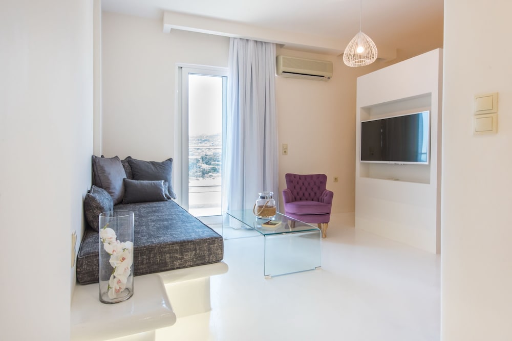 Eva Mare Hotel & Suites - Adults Only znajduje się w mieście Malewizi, na plaży i pięć minut piechotą od atrakcji takich jak Plaża Psaromoura i Prywatna Plaża Peninsula. Hotel (przy plaży) znajduje się 23,3 km od atrakcji takiej jak Port Heraklion i 22,8 km od miejsca takiego jak Muzeum Archeologiczne w Heraklionie. Poczuj się jak w domu w 53 klimatyzowanych pokojach, których wyposażenie to lodówka i telewizor LCD. Do pokoju przylega balkon. Bezpłatny bezprzewodowy dostęp do internetu zapewni łączność ze światem, a telewizja satelitarna — rozrywkę. Wyposażenie łazienki: bezpłatne przybory toaletowe i suszarki do włosów. Udogodnienia biznesowe to recepcja całodobowa, przechowalnia bagażu oraz biblioteka. Udogodnienia na miejscu to bezpłatne parkowanie samodzielne. Dostępne udogodnienia rekreacyjne to basen odkryty i centrum fitness. Ten hotel w stylu śródziemnomorskim oferuje również takie udogodnienia jak bezpłatny bezprzewodowy dostęp do internetu i obsługa portierska. W obiekcie takim jak hotel możesz znaleźć wiele miejsc, w których możesz coś zjeść, na przykład 2 restauracje i kawiarnię. Zakończ dzień pełen wrażeń drinkiem w barze/salonie klubowym, barze plażowym lub barze przy basenie. Hotel oferuje bezpłatne śniadanie w formie bufetu codziennie od 7:30 do 10.