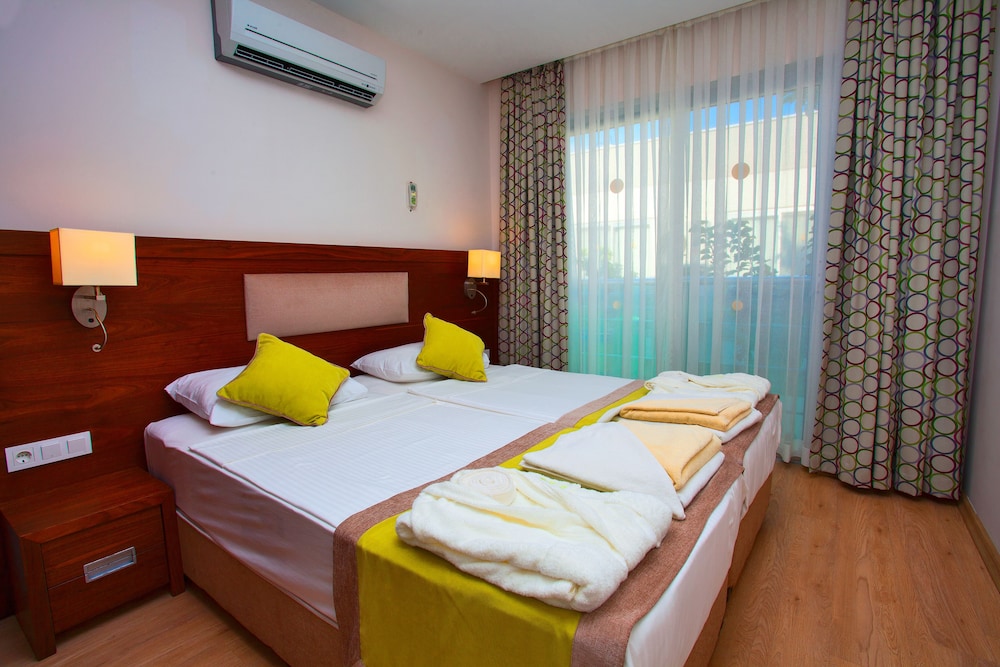 W czasie pobytu w obiekcie takim jak Green Garden Resort & Spa Hotel w mieście Alanya zamieszkasz niedaleko plaży, 15 minut samochodem od atrakcji takich jak Park wodny Alanya i Plaża Kleopatra. Hotel (all inclusive) znajduje się 0,9 km od atrakcji takiej jak Dom Atatürka i 1,3 km od miejsca takiego jak Centrum handlowe Alanyum. Poczuj się jak w domu w 314 klimatyzowanych pokojach, których wyposażenie to minibar i telewizor LCD. Do pokoju przylega balkon. Bezpłatny bezprzewodowy dostęp do internetu zapewni łączność ze światem, a telewizja satelitarna — rozrywkę. Prywatna łazienka — wyposażenie: prysznic, bezpłatne przybory toaletowe i suszarki do włosów. Odległości są podane z dokładnością do 0,1 kilometra.
