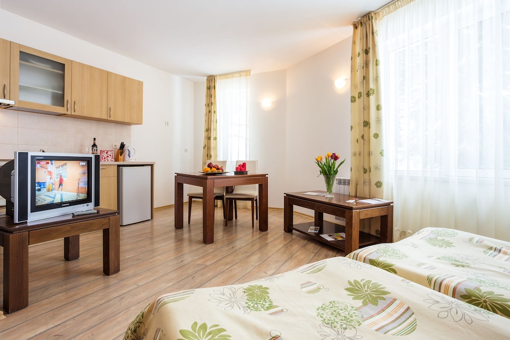 Stream Resort znajduje się w mieście Smolyan, w górach, 1 minut samochodem od atrakcji takiej jak Ośrodek narciarski Pamporowo i 6 minut od miejsca takiego jak FunPark Pamporovo.  Hotel (na narty) znajduje się 13,6 km od atrakcji takiej jak Ośrodek Narciarski w Czepełare i 17,5 km od miejsca takiego jak Ośrodek Narciarski w Somljanie. Poczuj się jak w domu w 70 pokojach, których wyposażenie to kuchnie (lodówka i kuchenka mikrofalowa). Bezpłatny przewodowy i bezprzewodowy dostęp do Internetu zapewni łączność ze światem, a telewizja kablowa — rozrywkę. Udogodnienia obejmują telefon oraz sejfy i oddzielne strefy wypoczynkowe. Odległości są podane z dokładnością do 0,1 kilometra.