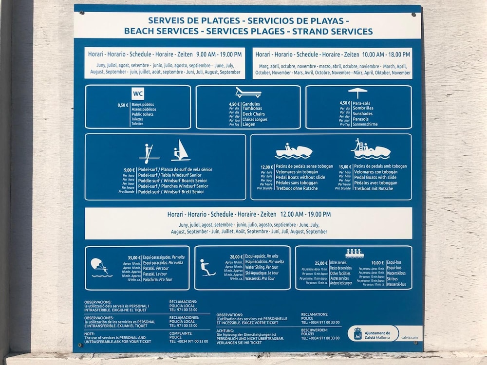 - Podatek miejski: 0.55 EUR za osobę, za noc od 1 listopada do 30 kwietnia, do maksymalnie 9 nocy pobytu, a później 0.28 EUR. Podatek nie dotyczy dzieci w wieku poniżej 16 lat.