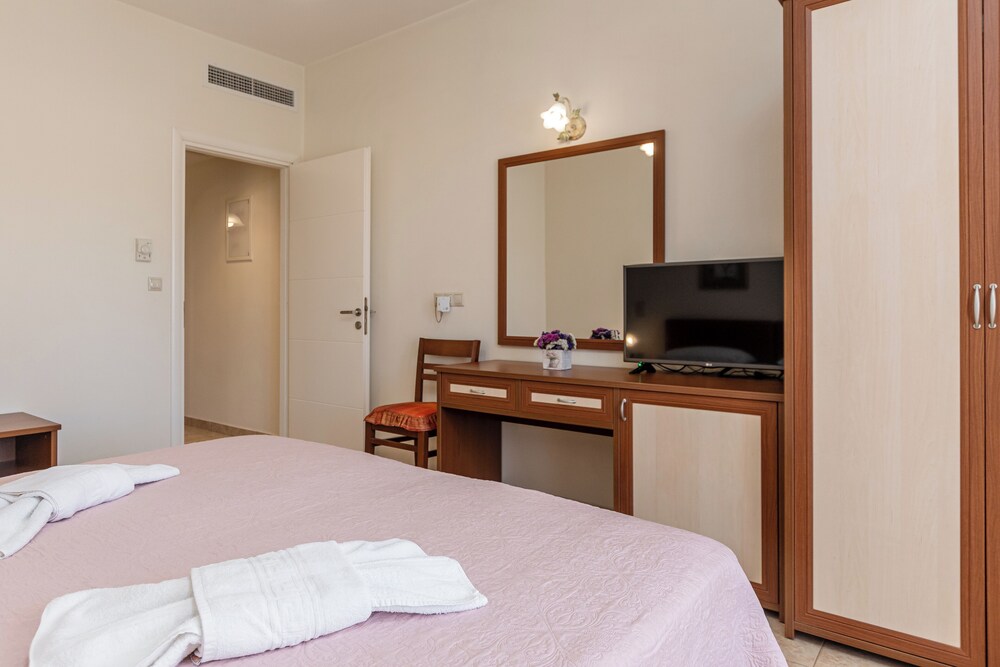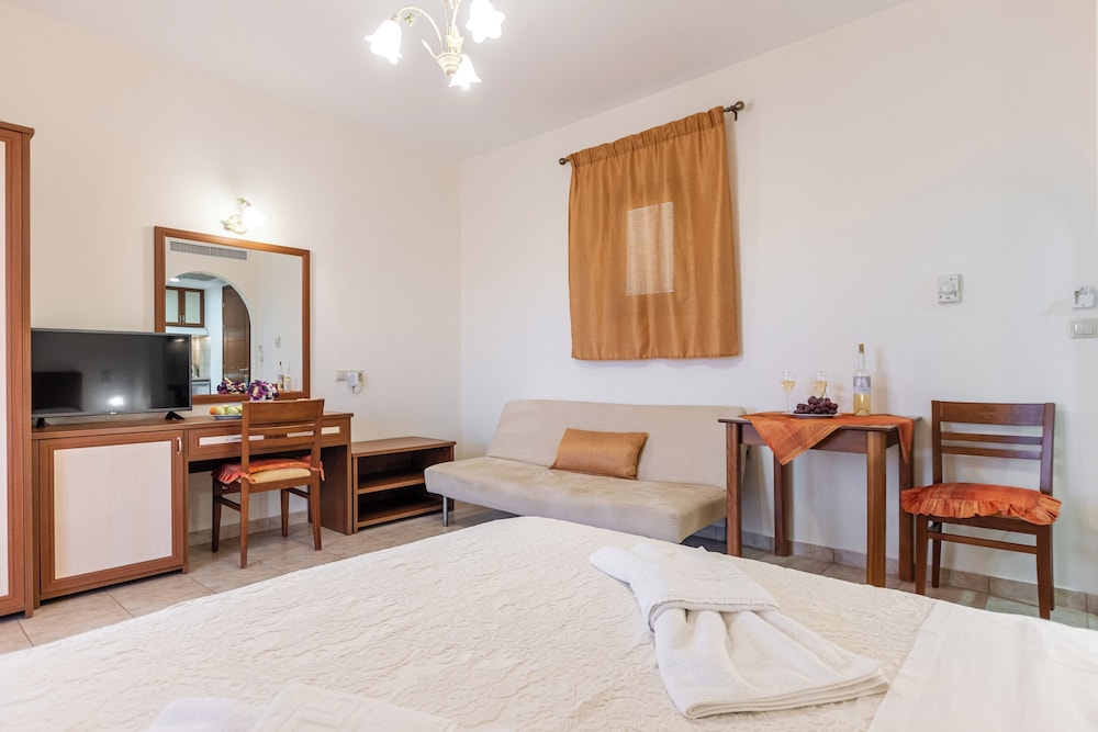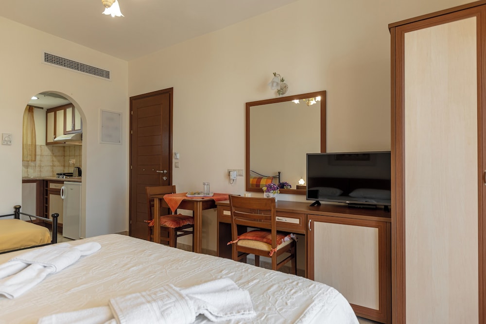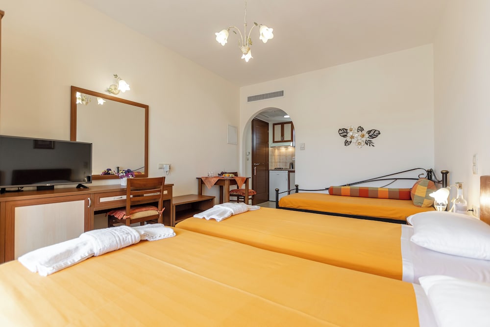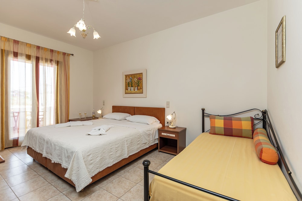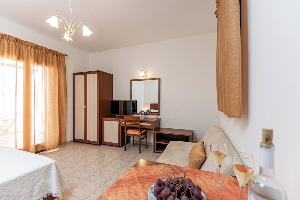 W czasie pobytu w obiekcie takim jak Anthi Studios w mieście Naksos zamieszkasz niedaleko plaży, 10 minut samochodem od atrakcji takich jak Port w Naksos i Plaża Agios Georgios. Dom gościnny znajduje się 38,5 km od atrakcji takiej jak Port w Parikii i 0,8 km od miejsca takiego jak Święty Mikołaj. Poczuj się jak w domu w 6 klimatyzowanych pokojach, których wyposażenie to kuchnie (lodówka i piekarniki). Do pokoju przylega umeblowany balkon lub patio. Bezpłatny przewodowy i bezprzewodowy dostęp do internetu zapewni łączność ze światem, a telewizor LED i telewizja satelitarna — rozrywkę. Udogodnienia obejmują sejfy i biurka oraz sprzątanie codziennie. Odległości są podane z dokładnością do 0,1 kilometra.