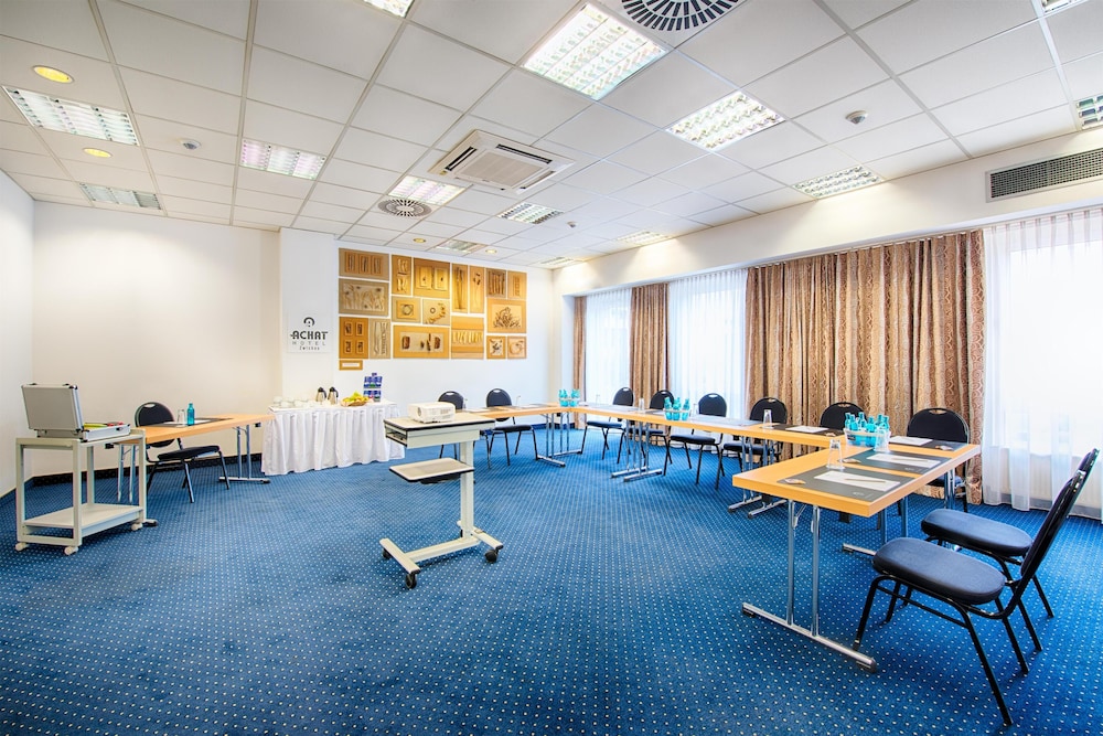 W czasie pobytu w obiekcie takim jak ACHAT Hotel Zwickau w mieście Zwickau znajdziesz się 2 minut piechotą od atrakcji takiej jak Teatr Neue Welt i 13 minut piechotą od miejsca takiego jak August Horch Museum. Hotel znajduje się 1,9 km od atrakcji takiej jak Johannisbad Zwickau i 1,9 km od miejsca takiego jak Muzeum miejskie w Zwickau. Poczuj się jak w domu w 198 pokojach. Bezpłatny bezprzewodowy dostęp do internetu zapewni łączność ze światem, a telewizja satelitarna — rozrywkę. Wyposażenie łazienki: wanny lub prysznice, bezpłatne przybory toaletowe i suszarki do włosów. Udogodnienia obejmują telefon oraz biurka i bezpłatne czasopisma. Udogodnienia biznesowe to centrum biznesowe, ekspresowe zameldowanie oraz bezpłatne czasopisma w holu. Jeżeli planujesz spotkanie w mieście Zwickau, hotel oferuje pomieszczenia konferencyjne o powierzchni 303 m kw. (3260 stopy kwadratowe). Udogodnienia na miejscu to samodzielne parkowanie (za opłatą). Dostępne udogodnienia to bezpłatny bezprzewodowy dostęp do internetu, salon fryzjerski oraz sklepy na miejscu. Ten hotel oferuje takie udogodnienia jak pomoc w organizacji biletów/wycieczek, sala bankietowa i parking rowerowy. Apetyt gości obiektu ACHAT Hotel Zwickau zaspokoi restauracja. Zrelaksuj się po całym dniu w barze/salonie klubowym. Śniadanie w formie bufetu jest podawane codziennie od 6:30 do 10 za opłatą. Hotelstars Union dokonuje oficjalnej klasyfikacji struktur noclegowych w tym kraju (Niemcy). Klasyfikacja tego obiektu to 4 gwiazdki.