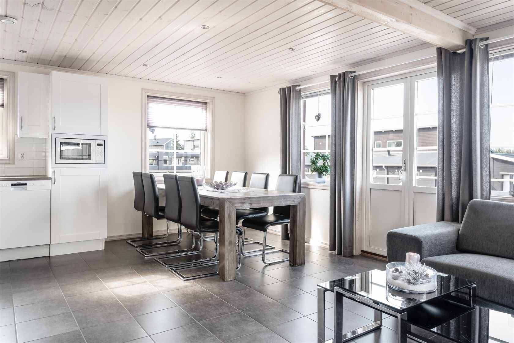 Här har man satsat på smakfull inredning och stora sällskapsytor för trevliga stunder tillsammans. Boendeytan är på 118 kvm och stugan har 10+1 bäddar fördelat på fyra sovrum. I det rymliga boendet på Aspen finns två härliga allrum (varav ett med braskamin), ett välutrustat kök samt bastu. Boendet har golvvärme och låsbart skidförråd