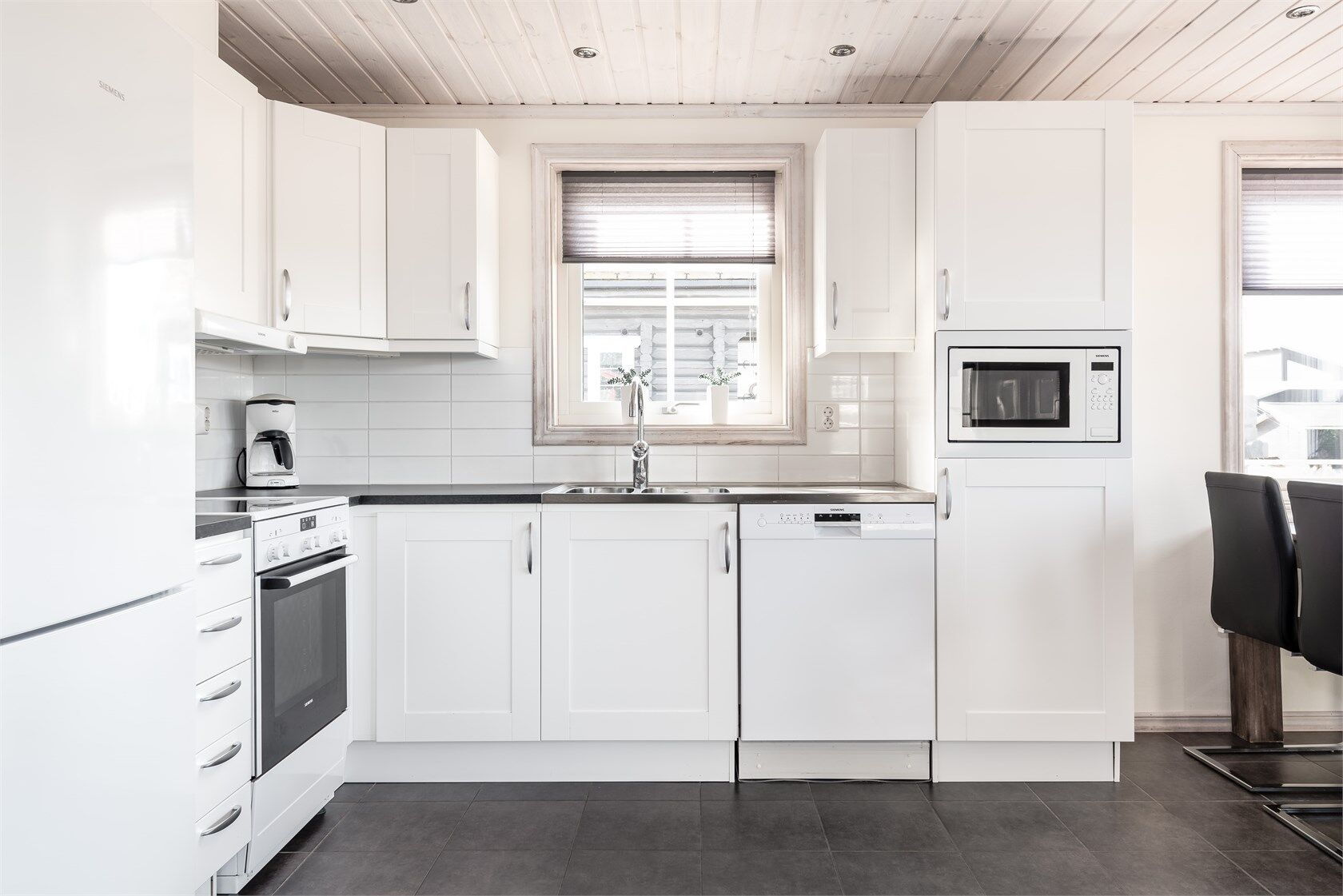 Kök Det välutrustade köket har bl.a. kyl och frys, spis med ugn, mikrovågsugn, kaffebryggare, vattenkokare och brödrost. Dishwasher is available in the accommodation.