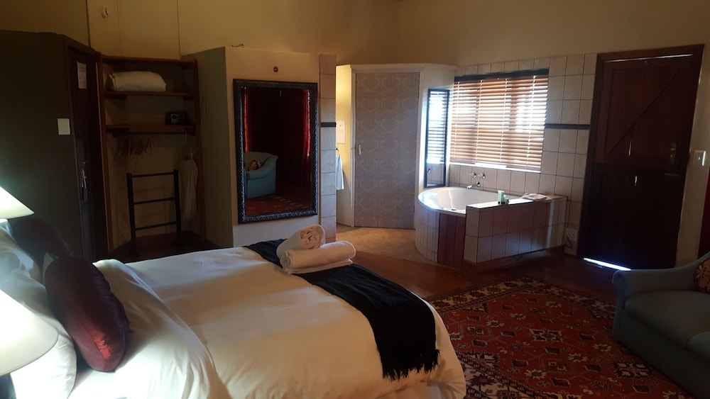 Udogodnienia biznesowe to bezpłatne czasopisma w holu, usługi pralni chemicznej oraz personel wielojęzyczny. Udogodnienia na miejscu to bezpłatne parkowanie samodzielne. Do pokoju przylegają taras i ogród, z których roztacza się piękny widok. Dostępne są również takie udogodnienia rekreacyjne, jak basen odkryty. Ten dom gościnny oferuje takie udogodnienia jak bezpłatny bezprzewodowy dostęp do internetu, usługi weselne i kominek w holu. W obiekcie takim jak dom gościnny do dyspozycji gości są restauracja, a także obsługa pokojowa (w określonych godzinach). Codziennie hotel oferuje bezpłatne przyjęcie. Hotel oferuje bezpłatne śniadanie kontynentalne codziennie od 7 do 9.- Opłata za transport z lotniska i na lotnisko: 330 ZAR za osobę (w jedną stronę)