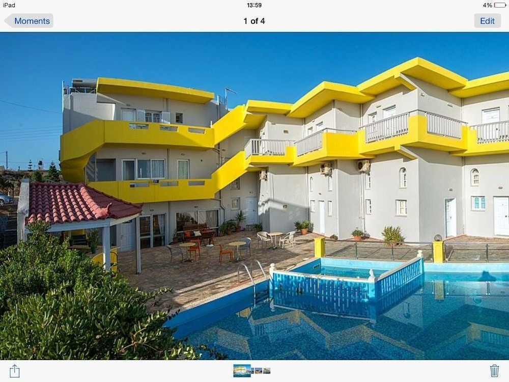 W czasie pobytu w obiekcie takim jak Kamaria Apartments w mieście Hersonissos zamieszkasz niedaleko plaży, 15 minut samochodem od atrakcji takich jak Port Heraklion i Port w Hersonissos. Hotel znajduje się 18,3 km od atrakcji takiej jak Plaża w Stalidzie i 11 km od miejsca takiego jak Park wodny Starbeach. Poczuj się jak w domu w 12 klimatyzowanych pokojach, których wyposażenie to aneksy kuchenne (lodówka i płyta kuchenna). Bezpłatny bezprzewodowy dostęp do internetu zapewni łączność ze światem, a telewizor plazmowy — rozrywkę. Udogodnienia obejmują oddzielne strefy wypoczynkowe i czajnik elektryczny. Udogodnienia biznesowe to personel wielojęzyczny i przechowalnia bagażu. Udogodnienia na miejscu to bezpłatne parkowanie samodzielne. Do pokoju przylegają taras i ogród, z których roztacza się piękny widok. Dostępne są również takie udogodnienia rekreacyjne, jak basen odkryty. Ten hotel oferuje również udogodnienia takie jak bezpłatny bezprzewodowy dostęp do internetu i grill. Za opłatą do dyspozycji gości jest wahadłowy autobus kursujący do pobliskich atrakcji. Śniadanie jest podawane za opłatą.