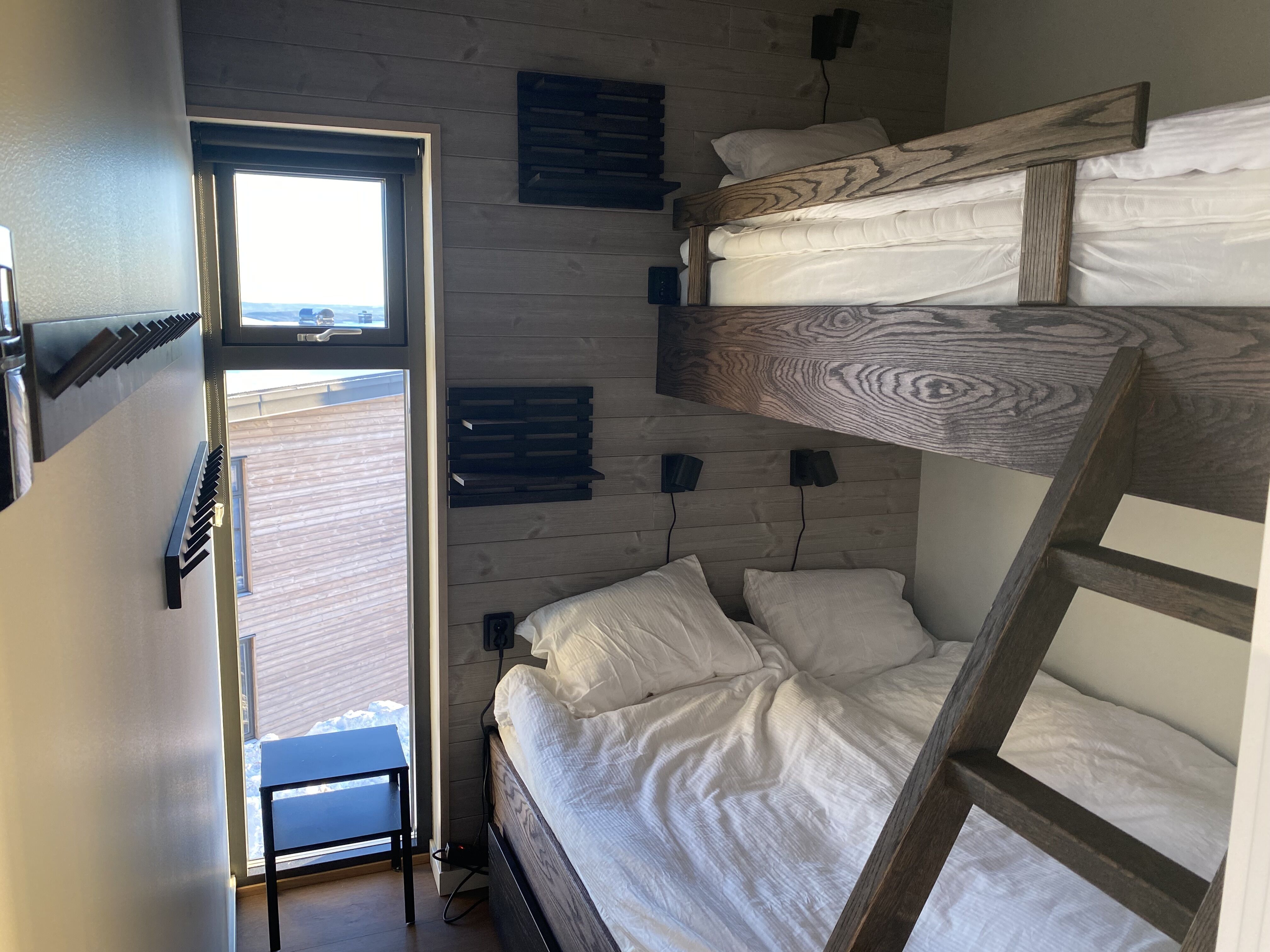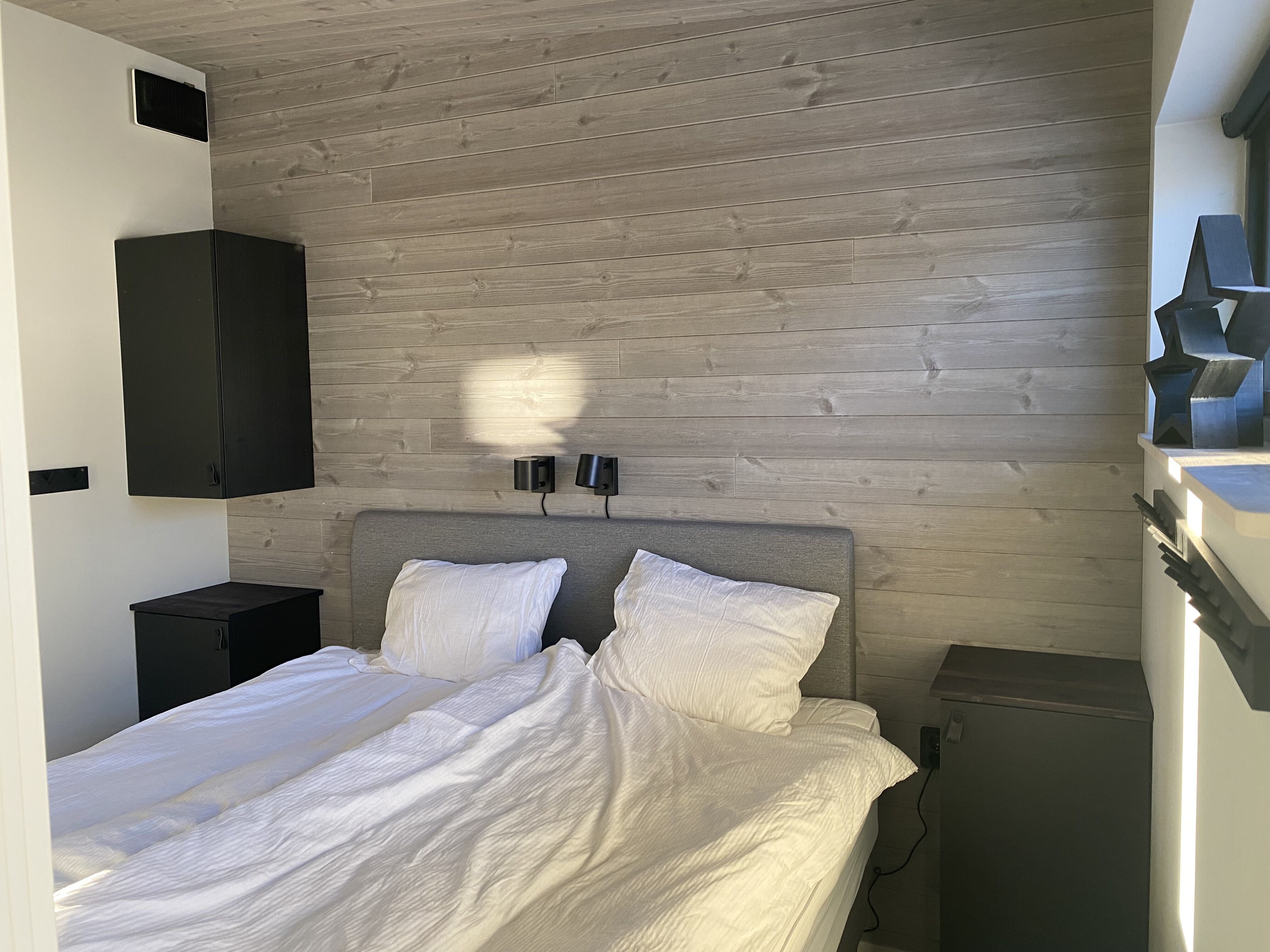 Sovrum I boendet finns fyra sovrum. Sovrummet på bottenvåningen har en familjesäng. På övervåningen finns tre sovrum. I två sovrum finns en dubbelsäng (160 cm) och i det tredje sovrummet en familjesäng. På familjesängarna är den nedre slafen 140 cm bred.