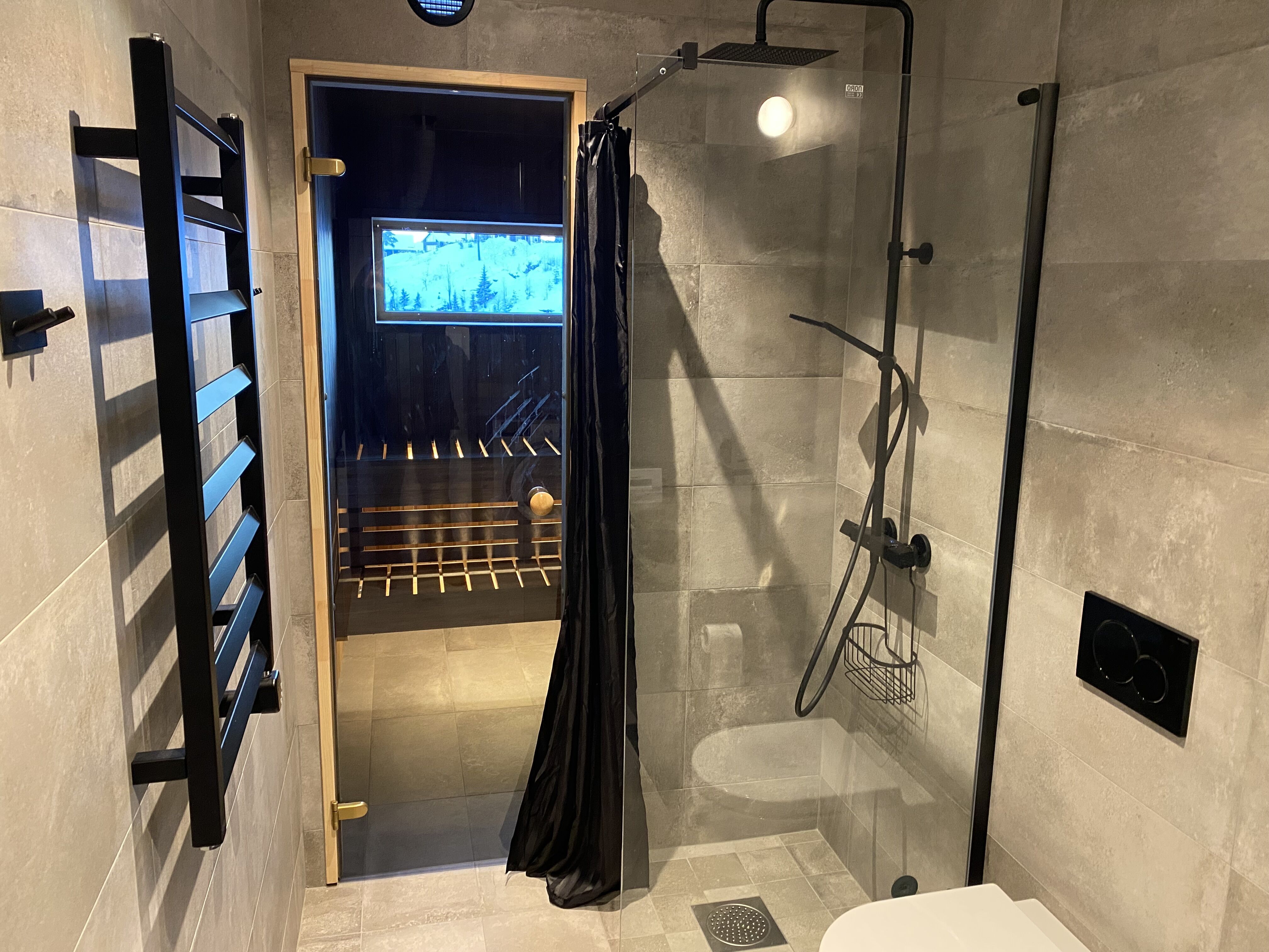 Badrum Två WC/ dusch samt en bastu. Tvättmaskin och torkskåp.