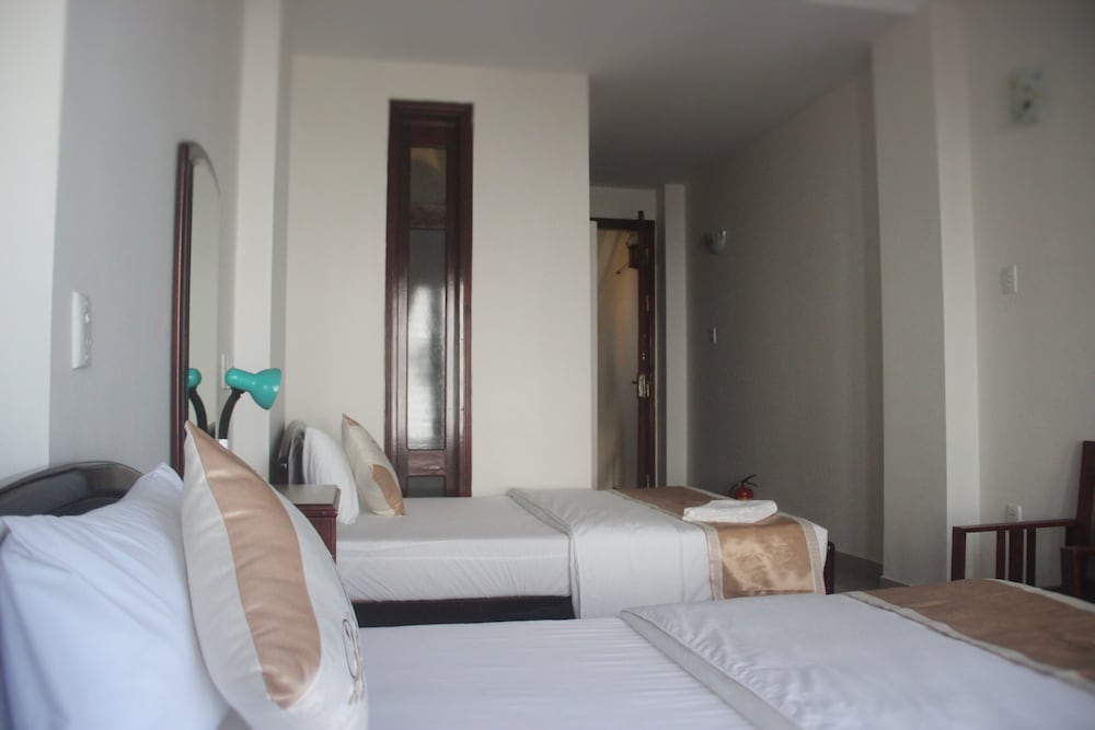 W czasie pobytu w obiekcie takim jak Hotel Cyclist w mieście Huế (Śródmieście Huế) zamieszkasz 10 minut piechotą od atrakcji takich jak Nocny Deptak w Hue i Deptak Nguyen Dinh Chieu. Hotel znajduje się 0,9 km od atrakcji takiej jak Most Truong Tien i 0,9 km od miejsca takiego jak Rzeka Perfumowa. Poczuj się jak w domu w 10 klimatyzowanych pokojach, których wyposażenie to lodówka i minibar. Bezpłatny bezprzewodowy dostęp do internetu zapewni łączność ze światem, a telewizja kablowa — rozrywkę. Prywatna łazienka — wyposażenie: wanny lub prysznice, prysznic z deszczownicą i bezpłatne przybory toaletowe. Udogodnienia obejmują telefon oraz biurka i opieka nad dziećmi (w pokoju, płatna). Udogodnienia biznesowe to centrum biznesowe, usługi pralni chemicznej oraz recepcja całodobowa. Płatne udogodnienia to transport z i na lotnisko (na życzenie). Do pokoju przylega taras, z którego roztacza się piękny widok. Dostępne są również takie udogodnienia, jak bezpłatny bezprzewodowy dostęp do internetu i pomoc w organizacji biletów/wycieczek. Za opłatą do dyspozycji gości jest wahadłowy autobus kursujący do pobliskich atrakcji. W obiekcie takim jak hotel do dyspozycji gości jest obsługa pokojowa (w określonych godzinach). Śniadanie na zamówienie jest podawane codziennie od 7 do 10 za opłatą.