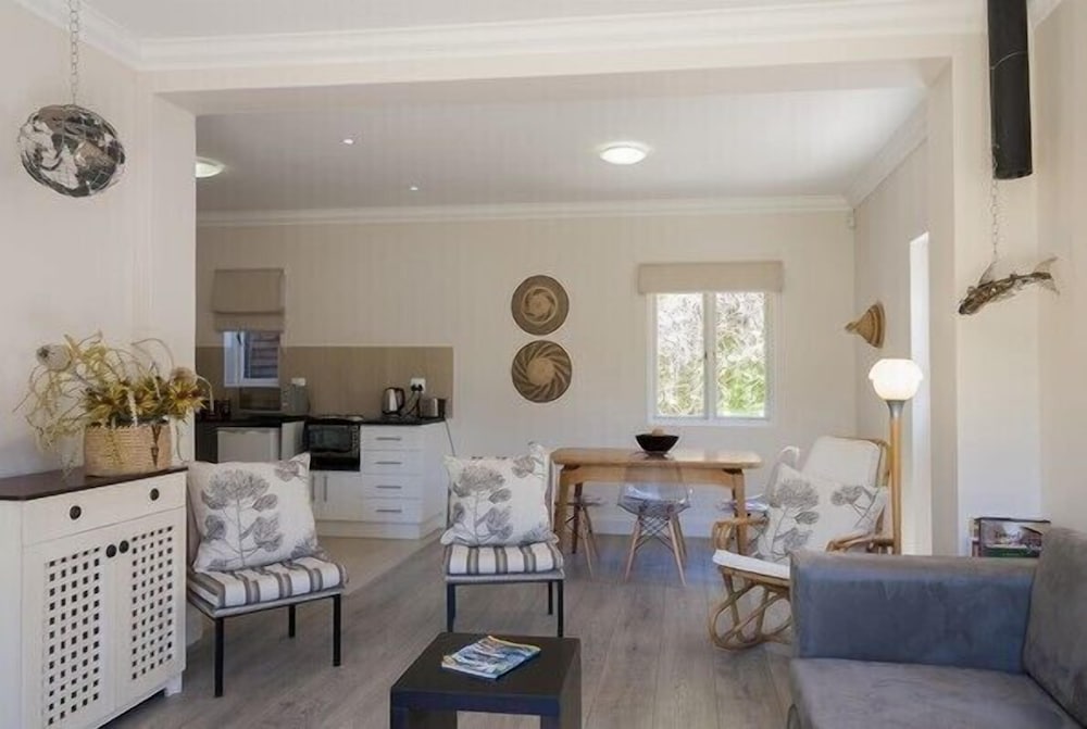 Udogodnienia biznesowe to centrum biznesowe, bezpłatne czasopisma w holu oraz usługi pralni chemicznej. Płatne udogodnienia to transport z i na lotnisko (całą dobę). Dostępna jest także taka usługa jak bezpłatne parkowanie samodzielne. Do pokoju przylegają taras i ogród, z których roztacza się piękny widok. Dostępne są również takie udogodnienia rekreacyjne, jak basen odkryty. Ten pensjonat B&B oferuje również udogodnienia takie jak bezpłatny bezprzewodowy dostęp do internetu, obsługa portierska i kominek w holu. Codziennie hotel oferuje bezpłatne przyjęcie. Ożywcze napoje znajdziesz w jednym z lokali: bar/salon klubowy. Hotel oferuje bezpłatne śniadanie ze specjałami kuchni regionalnej codziennie od 7 do 10. Jakość oceniona przez Tourism Grading Council of South Africa (TGCSA) – oficjalną organizację ds. kontroli jakości w Republice Południowej Afryki.- Opłata za transport z lotniska i na lotnisko: 500 ZAR za osobę (w jedną stronę)