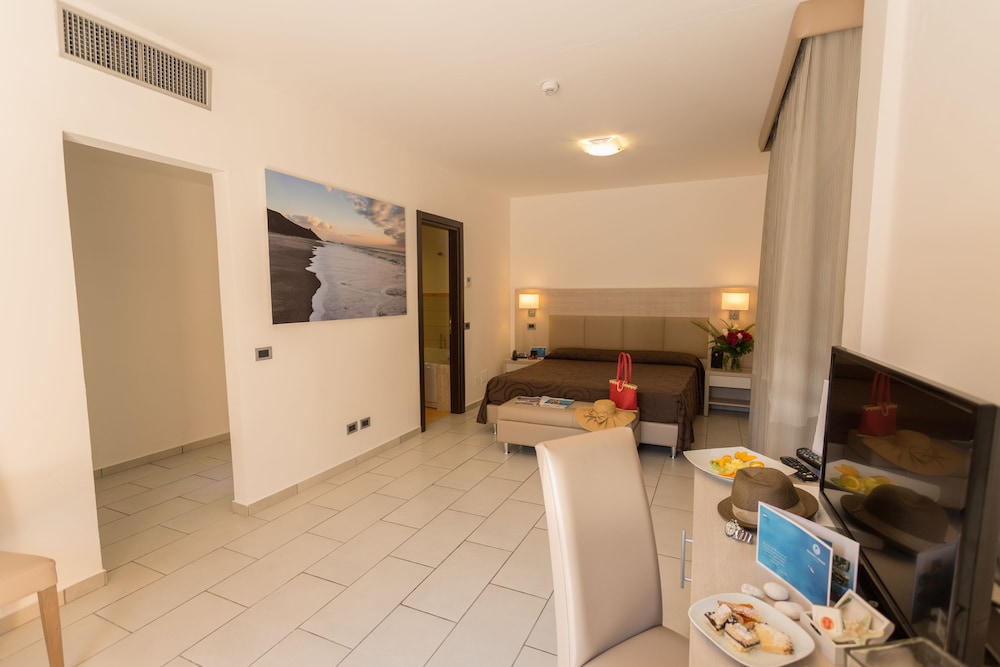 Do pokoju przylegają taras i ogród, z których roztacza się piękny widok. Dostępne są również takie udogodnienia rekreacyjne, jak sezonowy basen odkryty. Apetyt gości obiektu Futura Club Cilento zaspokoi restauracja. Zrelaksuj się po całym dniu w barze/salonie klubowym.