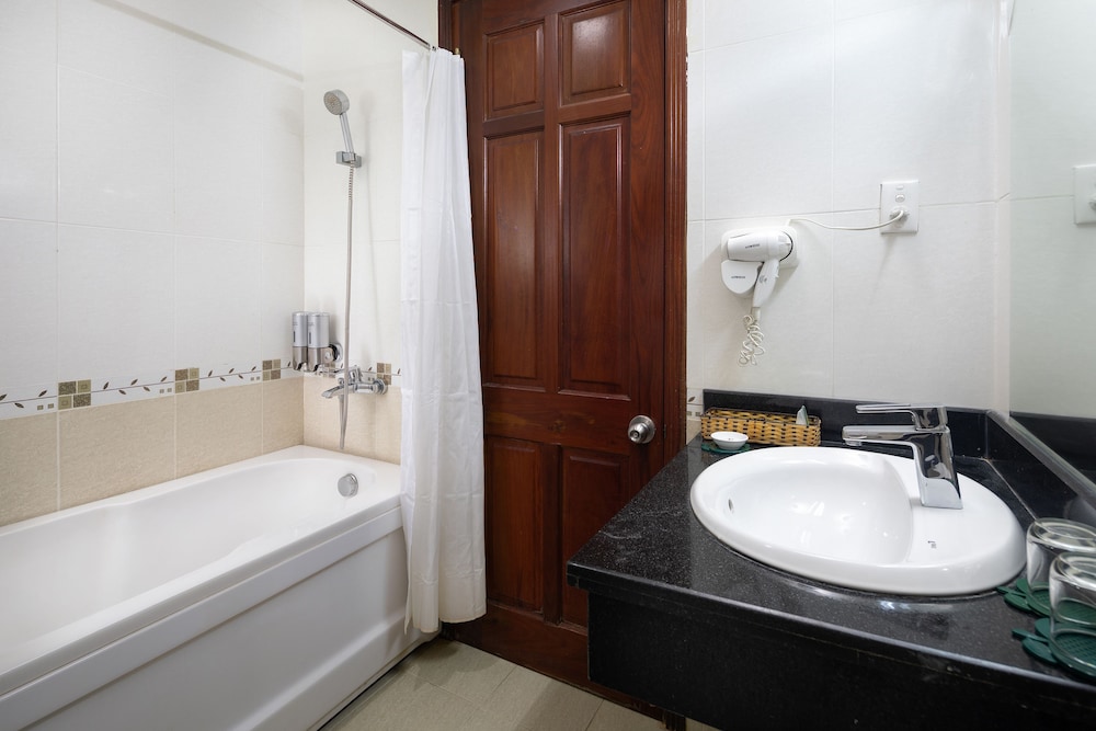 W czasie pobytu w obiekcie takim jak Corvin Hotel w mieście Vung Tau znajdziesz się pięć minut samochodem od atrakcji takich jak Back Beach (plaża) i Wieża Tam Thang.  Hotel (przy plaży) znajduje się 25,4 km od atrakcji takiej jak Plaża Long Hai i 1,3 km od miejsca takiego jak Punkt widokowy Đồi Con Heo. Poczuj się jak w domu w 56 klimatyzowanych pokojach, których wyposażenie to lodówka i minibar. Bezpłatny bezprzewodowy dostęp do internetu zapewni łączność ze światem, a telewizor LCD i kablowa — rozrywkę. Prywatna łazienka — wyposażenie: wanny lub prysznice, bezpłatne przybory toaletowe i suszarki do włosów. Udogodnienia obejmują telefon oraz sejfy i zestawy do parzenia kawy i herbaty. Odległości są podane z dokładnością do 0,1 kilometra.