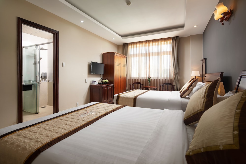 Udogodnienia biznesowe to wynajem limuzyn i samochodów, komputer stacjonarny oraz usługi pralni chemicznej. Płatne udogodnienia to transport z i na lotnisko (całą dobę) i transport do przystani promowej i z przystani. Udogodnienia rekreacyjne to basen odkryty. Dostępne są również takie udogodnienia, jak bezpłatny bezprzewodowy dostęp do internetu i obsługa portierska. Ten hotel oferuje również udogodnienia takie jak telewizor w holu i sala bankietowa. Twój apetyt zaspokoi Corvin, restauracja, która specjalizuje się w kuchni takiej jak owoce morza i której podawane są pyszne obiad i kolacja. Możesz też zostać w pokoju i skorzystać z obsługi pokojowej w określonych godzinach. Śniadanie na zamówienie jest podawane codziennie od 6:30 do 9 za opłatą.- Opłata za śniadanie na zamówienie: ok. 80000 VND za osobę dorosłą i 60000 VND za dziecko