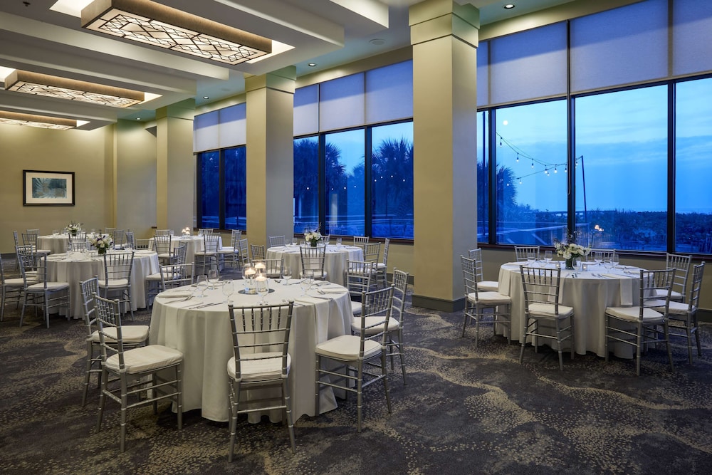 W czasie pobytu w obiekcie takim jak Hilton Cocoa Beach Oceanfront w mieście Cocoa Beach zamieszkasz na plaży, 2 minut samochodem od atrakcji takiej jak Cocoa Beach i 6 minut od miejsca takiego jak Molo w Cocoa Beach. Hotel (przy plaży) znajduje się 26,9 km od atrakcji takiej jak Kompleks USSSA Space Coast i 27,9 km od miejsca takiego jak Brevard Zoo (ogród zoologiczny). Poczuj się jak w domu w 296 pokojach, których wyposażenie to lodówka i telewizor płaskoekranowy. Wyposażenie łóżek to pillowtop oraz kołdry puchowe i pościel premium. Bezprzewodowy dostęp do internetu (płatny) zapewni łączność ze światem, a telewizja satelitarna — rozrywkę. Prywatna łazienka — wyposażenie: wanny lub prysznice, markowe przybory toaletowe i suszarki do włosów. Udogodnienia biznesowe to całodobowe centrum biznesowe, ekspresowe wymeldowanie oraz usługi pralni chemicznej. Jeżeli planujesz spotkanie w mieście Cocoa Beach, hotel oferuje pomieszczenia konferencyjne oraz sale konferencyjne o łącznej powierzchni 378 m kw. (4069 stopy kwadratowe). Płatne udogodnienia to transport do przystani rejsowej i z przystani. Dostępna jest także taka usługa jak samodzielne parkowanie (za opłatą). Dostępne udogodnienia rekreacyjne to basen odkryty, całodobowe centrum fitness oraz rowery do wypożyczenia. Ten hotel oferuje udogodnienia takie jak bezpłatny bezprzewodowy dostęp do internetu, obsługa portierska i usługi weselne. Hotel zaprasza Cię do jednej z 2 restauracji. Możesz też zostać w pokoju i skorzystać z obsługi pokojowej w określonych godzinach lub pójść po przekąskę do kawiarni. Ożywcze napoje znajdziesz w jednym z lokali: bar przy basenie, 2 bary/salony klubowe i 2 bary na plaży. Śniadanie pełne jest podawane codziennie od 7 do 11 za opłatą.