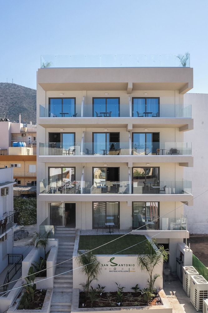 W czasie pobytu w obiekcie takim jak San Antonio Boutique Hotel w mieście Hersonissos zamieszkasz pięć minut samochodem od atrakcji takich jak Park wodny Starbeach i Port w Hersonissos. Hotel znajduje się 5,2 km od atrakcji takiej jak Plaża w Stalidzie i 0,6 km od miejsca takiego jak Akwarium Aquaworld. Poczuj się jak w domu w 33 klimatyzowanych pokojach, których wyposażenie to telewizor płaskoekranowy. Bezpłatny bezprzewodowy dostęp do internetu zapewni łączność ze światem, a telewizja kablowa — rozrywkę. Prywatna łazienka — wyposażenie: wanny lub prysznice, suszarki do włosów i kapcie. Udogodnienia obejmują sejfy i czajnik elektryczny oraz sprzątanie codziennie. Odległości są podane z dokładnością do 0,1 kilometra.