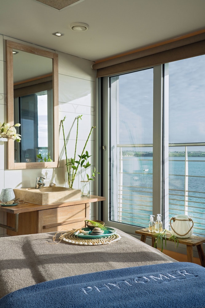 W czasie pobytu w obiekcie takim jak Hôtel Valdys Thalasso & Spa - Beau rivage w mieście Roscoff znajdziesz się na plaży, jedynie 1 minut piechotą od atrakcji takiej jak Plaża de Roc'h Kroum i 7 minut piechotą od miejsca takiego jak Notre-Dame de Croaz Batz. Hotel (przy plaży) znajduje się 0,9 km od atrakcji takiej jak La Maison des Johnnies et de l'Oignon Rose de Roscoff i 2,1 km od miejsca takiego jak Grève Blanche. Poczuj się jak w domu w 75 pokojach, których wyposażenie to minibar i ekspres do kawy. Wyposażenie łóżek to Tempur-Pedic oraz pościel premium. Do pokoju przylega umeblowany balkon. Bezpłatny bezprzewodowy dostęp do internetu zapewni łączność ze światem, a 82-cm telewizor plazmowy i telewizja kablowa — rozrywkę. Prywatna łazienka — wyposażenie: bezpłatne przybory toaletowe i suszarki do włosów. Odległości są podane z dokładnością do 0,1 kilometra.