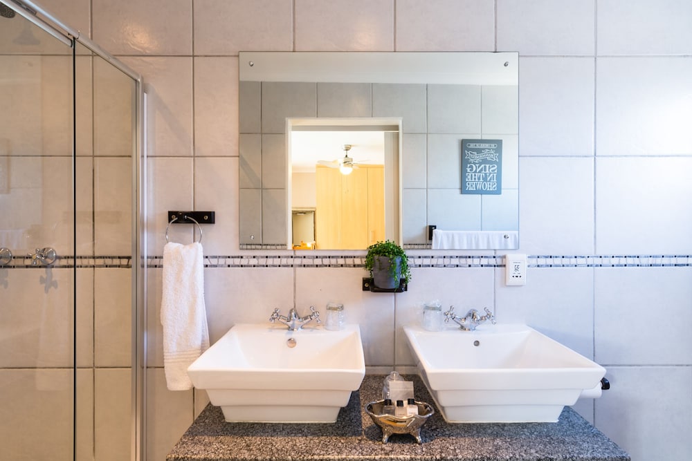 Udogodnienia biznesowe to komputer stacjonarny, usługi pralni chemicznej oraz przechowalnia bagażu. Płatne udogodnienia to transport z i na lotnisko (całą dobę). Dostępna jest także taka usługa jak bezpłatne parkowanie samodzielne. Do pokoju przylegają taras i ogród, z których roztacza się piękny widok. Dostępne są również takie udogodnienia rekreacyjne, jak basen odkryty. Ten dom gościnny oferuje udogodnienia takie jak bezpłatny bezprzewodowy dostęp do internetu, obsługa portierska i kominek w holu. Za opłatą do dyspozycji gości jest wahadłowy autobus kursujący do pobliskich atrakcji. W obiekcie takim jak dom gościnny do dyspozycji gości jest obsługa pokojowa (w określonych godzinach). Ożywcze napoje znajdziesz w jednym z lokali: bar/salon klubowy. Hotel oferuje bezpłatne śniadanie pełne codziennie od 7 do 9.- Opłata za transport z lotniska i na lotnisko: 785 ZAR za pojazd (w jedną stronę, maksymalna liczba miejsc: 4)