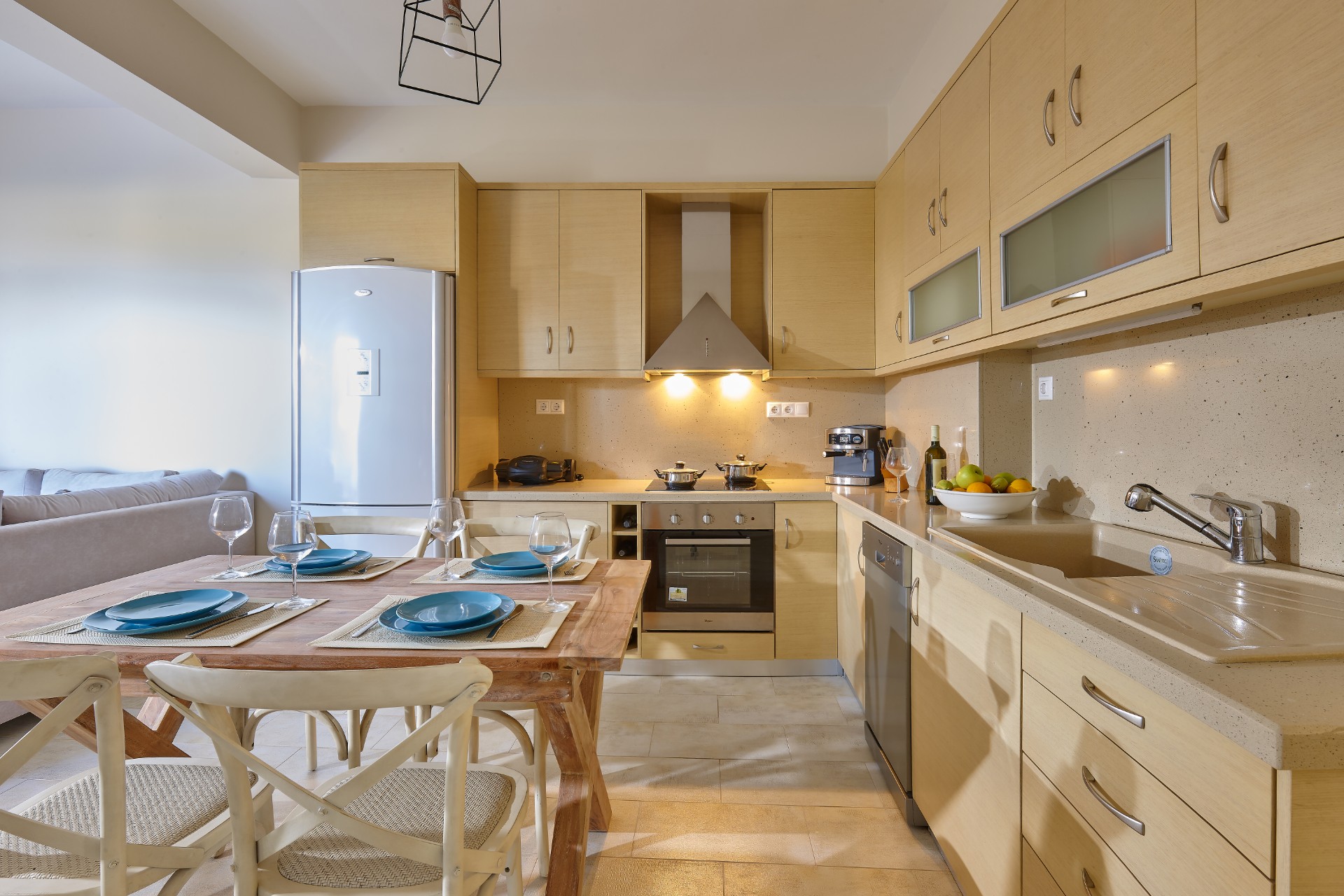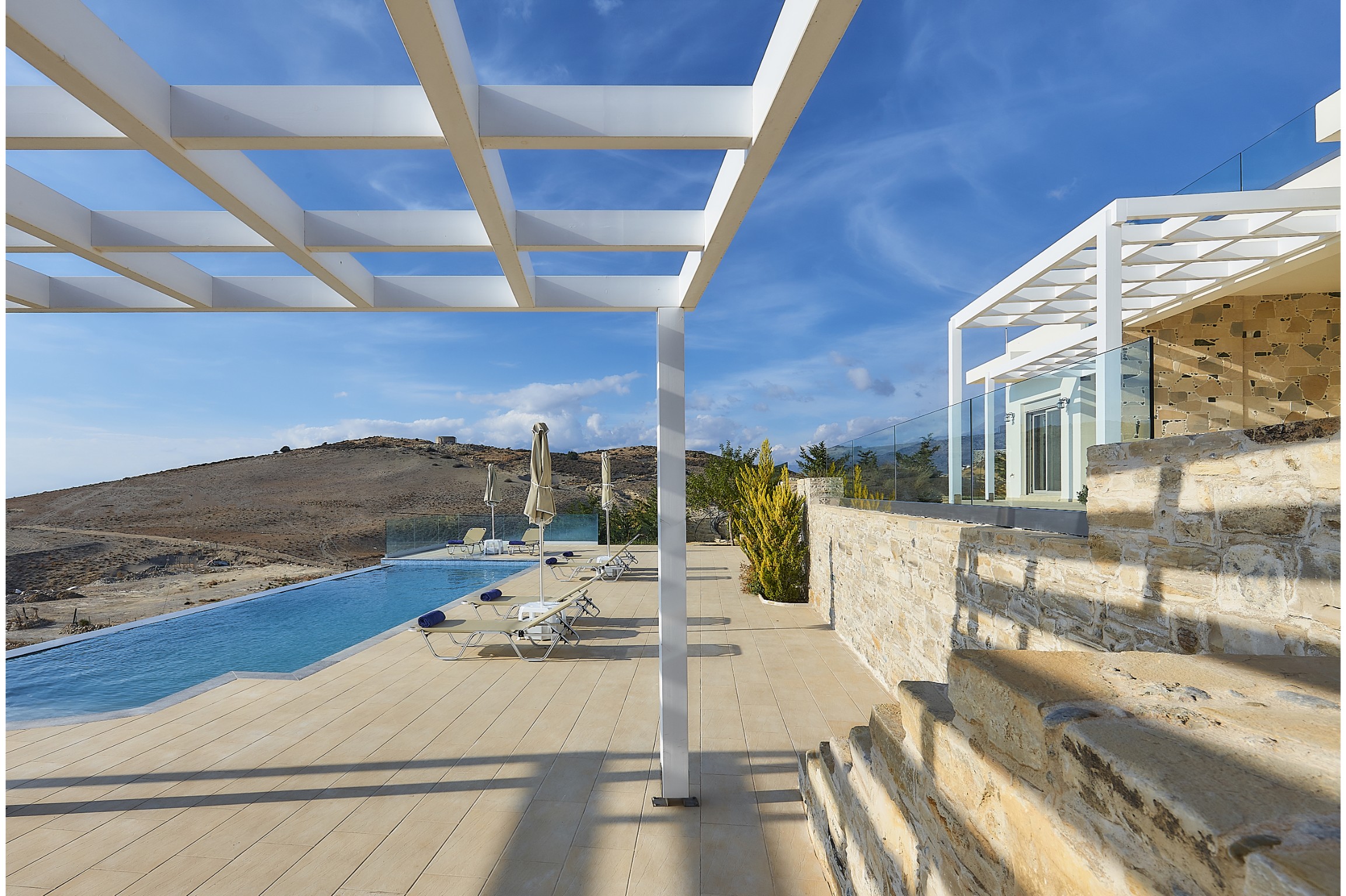 Nowe luksusowe apartamenty wakacyjne Elkysti Crete, zbudowane na zboczu wzgórza w stylu amfiteatru, oferuj niezakócony widok na Morze ródziemne i masyw Psiloritis. Pooone okoo 500 metrów od piaszczystej play w Kalamaki i 2 km od tradycyjnej wioski Kamilari, oferuj basen ze sodk wod i cztery eleganckie, niezalene apartamenty usytuowane na uroczym, przestronnym dziedzicu. Wysokiej jakoci meble w morskich barwach idealnie komponuj si z nadmorskim pooeniem kompleksu. Kady apartament (na parterze) oferuje komfort i dostp do dwóch czciowo zadaszonych tarasów. Trzy apartamenty maj powierzchni okoo 70 metrów kwadratowych, a jeden 55 metrów kwadratowych.