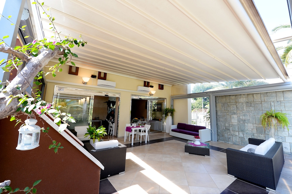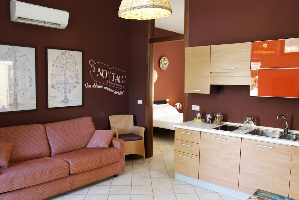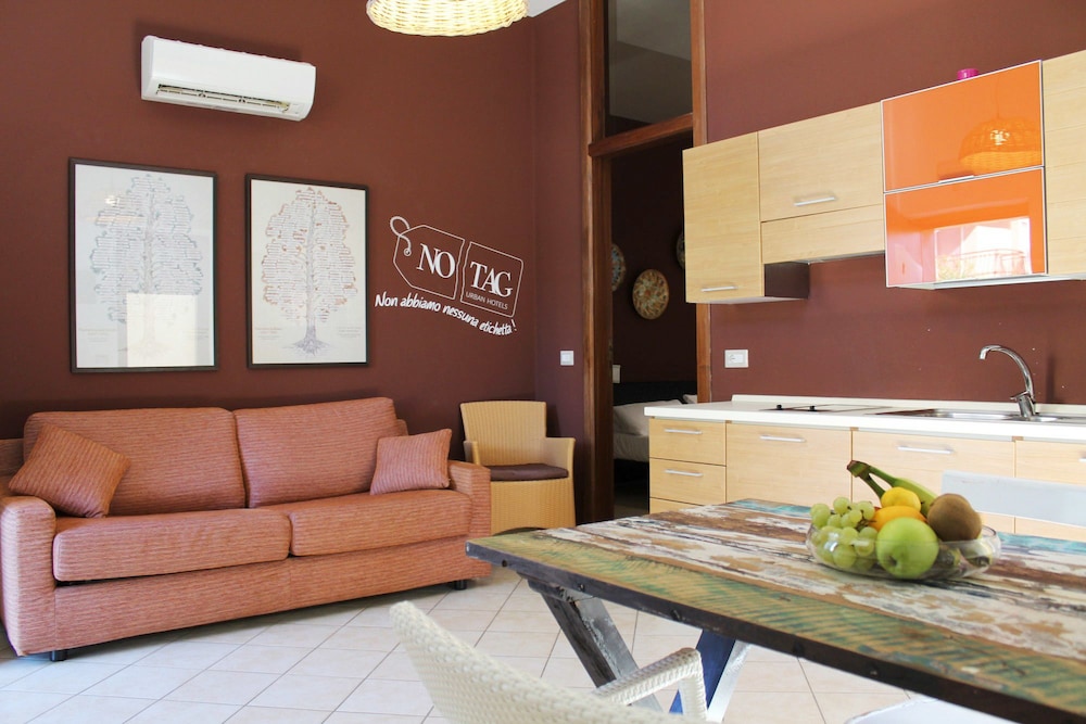 W czasie pobytu w obiekcie No Tag znajdziesz się w samym centrum miasta Trani, pięć minut samochodem od atrakcji takich jak Port w Trani i Plaża Trani. Ten rezydencja znajduje się 3 km od atrakcji takiej jak Zamek w Trani i 12,9 km od miejsca takiego jak Dolmen w Bisceglie. Poczuj się jak w domu w 12 klimatyzowanych pokojach, których wyposażenie to aneksy kuchenne (lodówka i płyta kuchenna). Bezpłatny bezprzewodowy dostęp do Internetu zapewni łączność ze światem, a telewizor LCD i cyfrowa — rozrywkę. Udogodnienia obejmują sprzątanie codziennie oraz płatne łóżeczka dziecięce na życzenie. Udogodnienia biznesowe to usługi pralni chemicznej i pralnia. Płatne udogodnienia to transport z i na lotnisko (całą dobę) i odbiór gości z dworca kolejowego. Do pokoju przylegają taras i ogród, z których roztacza się piękny widok. Dostępne są również takie udogodnienia, jak bezpłatny bezprzewodowy dostęp do Internetu. Ten rezydencja oferuje również udogodnienia takie jak obsługa portierska i grill. Rezydencja zaprasza do skorzystania z takich udogodnień jak bar zakąskowy/delikatesy, a także obsługa pokojowa (w określonych godzinach). Ożywcze napoje znajdziesz w jednym z lokali: bar/salon klubowy i bar plażowy.