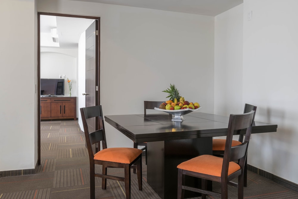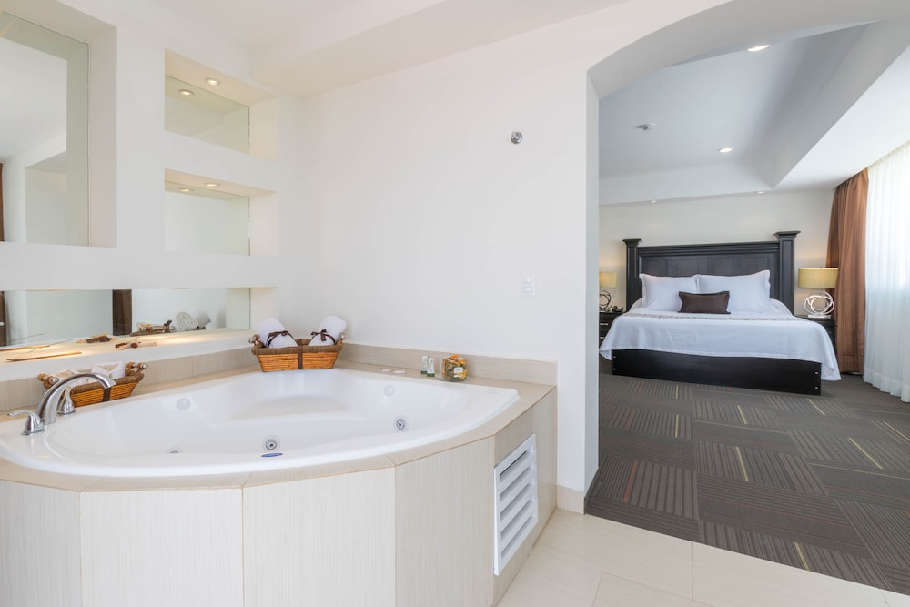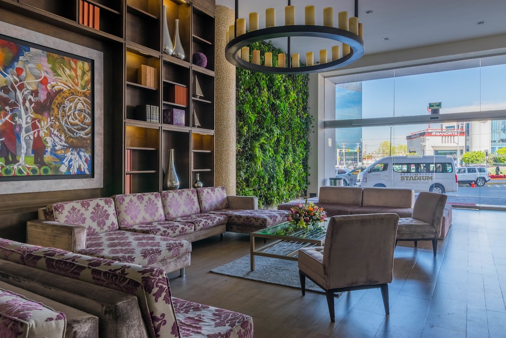 Hotel Plaza Stadium znajduje się w mieście León (La Martinica), 15 minut piechotą od atrakcji takich jak Stadion w León i Centrum kongresowo-targowe Poliforum León. Hotel znajduje się 9,2 km od atrakcji takiej jak Park miejski w León i 0,1 km od miejsca takiego jak Distrito León MX. Poczuj się jak w domu w 189 klimatyzowanych pokojach, których wyposażenie to telewizor LED. Wyposażenie łóżek to pillowtop oraz kołdry puchowe. Bezpłatny bezprzewodowy dostęp do internetu zapewni łączność ze światem, a telewizja kablowa — rozrywkę. Wyposażenie łazienki: prysznic, markowe przybory toaletowe i suszarki do włosów. Udogodnienia biznesowe to centrum biznesowe, usługi pralni chemicznej oraz recepcja całodobowa. Płatne udogodnienia to transport z hotelu na lotnisko (całą dobę). Dostępna jest także taka usługa jak bezpłatne parkowanie przez obsługę. Dostępne udogodnienia rekreacyjne to basen odkryty i centrum fitness. Ten hotel oferuje takie udogodnienia jak bezpłatny bezprzewodowy dostęp do internetu, obsługa portierska i sala balowa. Zachwyć się kuchnią taką jak kuchnia międzynarodowa w restauracji Sky Bar 360+1 jednej z 2 restauracji w obiekcie takim jak hotel. Możesz też zostać w pokoju i skorzystać z obsługi pokojowej w określonych godzinach. Zrelaksuj się po całym dniu w barze/salonie klubowym. Śniadanie w formie bufetu jest podawane codziennie od 7 do południa za opłatą.