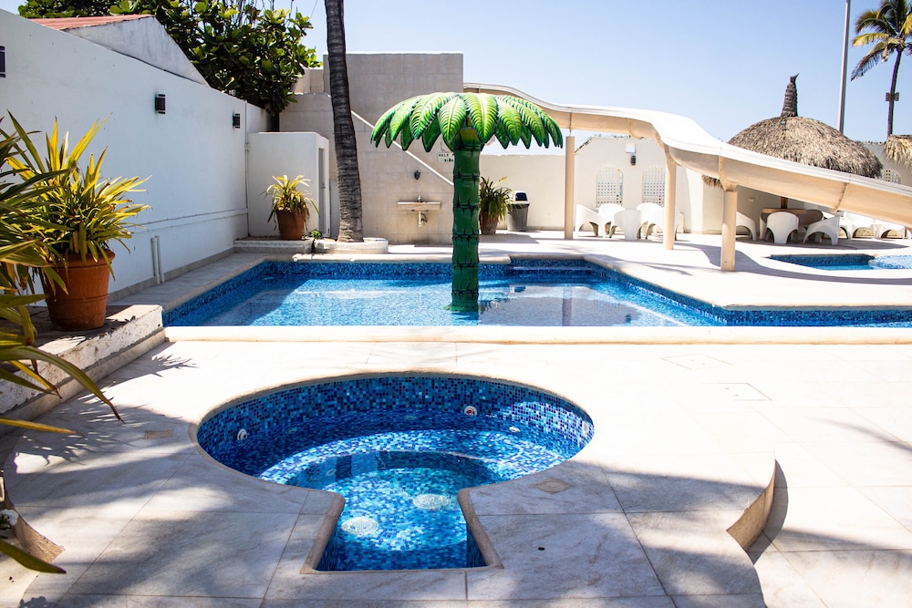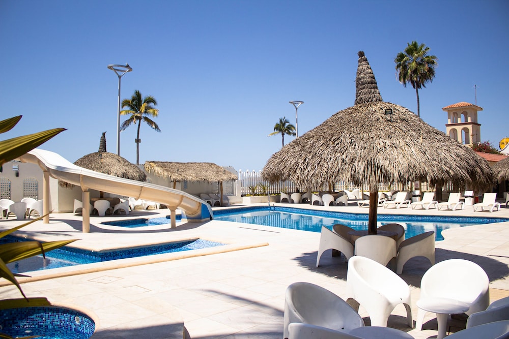 W czasie pobytu w obiekcie takim jak Hotel Sands Arenas w mieście Mazatlán zamieszkasz nad oceanem, pięć minut samochodem od atrakcji takich jak Mazatlán Malecón i Oceanarium w Mazatlán. Hotel (przy plaży) znajduje się 3,7 km od atrakcji takiej jak Plaza Machado i 4,4 km od miejsca takiego jak Plaża Olas Altas. Poczuj się jak w domu w 101 klimatyzowanych pokojach, których wyposażenie to Telewizory Smart TV. Bezpłatny bezprzewodowy dostęp do internetu zapewni łączność ze światem, a telewizja kablowa — rozrywkę. Wyposażenie łazienki: prysznic i suszarki do włosów. Udogodnienia obejmują telefon i bezpłatna woda butelkowana oraz sprzątanie codziennie. Udogodnienia biznesowe to usługi pralni chemicznej, recepcja całodobowa oraz przechowalnia bagażu. Udogodnienia na miejscu to bezpłatne parkowanie samodzielne. Dostępne udogodnienia rekreacyjne to basen odkryty, zjeżdżalnia wodna oraz jacuzzi. Ten hotel oferuje udogodnienia takie jak bezpłatny bezprzewodowy dostęp do internetu, obsługa portierska i automat. Spróbuj dań kuchni takiej jak kuchnia międzynarodowa, które serwuje Del Pacifico, restauracja, gdzie znajduje się doskonale wyposażony bar/salon klubowy. Możesz też zostać w pokoju i skorzystać z obsługi pokojowej. Śniadanie w formie bufetu jest podawane codziennie od 20 do południa za opłatą. Następujące udogodnienia lub usługi będą niedostępne od 11 styczeń 2026 r. do 11 luty 2026 r. (daty mogą ulec zmianie):