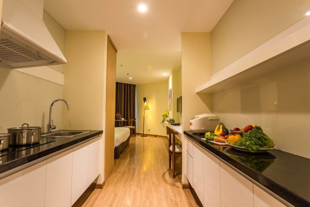 Premier Coastal Nha Trang Apartments znajduje się w samym centrum miasta Nha Trang, a 4 minutę piechotą od Louisiane Brewhouse i 8 minut piechotą od Plac 2 kwietnia. Ten aparthotel (przy plaży) znajduje się 0,7 km od atrakcji takiej jak Wieża Tram Huong i 0,9 km od miejsca takiego jak Nocny targ w Nha Trang. Poczuj się jak w domu w 92 oryginalnie umeblowane pokojach, których wyposażenie to aneksy kuchenne (lodówka i płyta kuchenna). Wyposażenie łóżek to Tempur-Pedic oraz pościel z egipskiej bawełny. Bezpłatny bezprzewodowy dostęp do Internetu zapewni łączność ze światem, a telewizor LCD i kablowa — rozrywkę. Udogodnienia obejmują telefon oraz sejfy na laptopa i biurka. Udogodnienia biznesowe to całodobowe centrum biznesowe, usługi pralni chemicznej oraz recepcja całodobowa. Ten obiekt typu aparthotel zapewnia udogodnienia konferencyjne takie jak centrum konferencyjne i salon konferencyjny. Płatne udogodnienia to transport z i na lotnisko (całą dobę) i przewóz gości na stację kolejową. Zrelaksuj się w spa, które oferuje masaż, zabiegi na ciało i zabiegi na twarz. Dostępne udogodnienia rekreacyjne to siłownia, basen odkryty oraz wanna spa. Ten aparthotel oferuje udogodnienia takie jak bezpłatny bezprzewodowy dostęp do Internetu, usługi niani (za dopłatą) i sala/salon gier. Za opłatą do dyspozycji gości jest wahadłowy autobus umożliwiający dojazd do parku rozrywki. Zachwyć się kuchnią taką jak kuchnia wietnamska w restauracji Vela, jednej z 3 restauracji w obiekcie takim jak aparthotel. Możesz też zostać w pokoju i skorzystać z całodobowej obsługi pokojowej lub pójść po przekąskę do 2 kawiarni. Ożywcze napoje znajdziesz w barze/salonie klubowym, barze plażowym i barze przy basenie. Śniadanie w formie bufetu jest podawane codziennie od 6.00 do 10.00 za opłatą.