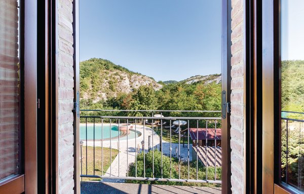 To mieszkanie wakacyjne znajduje się na terenie posiadłości Valguerriera, około 4 km od Piobbico, w dolinie Apeninów, idealnego miejsca dla tych, którzy chcą spędzić relaksujące wakacje na łonie natury. Posiadłość składa się z dworu i trzech domów wiejskich, przestronnych wspólnych terenów zewnętrznych i pięknego wspólnego basenu (17x10m) z hydromasażem. W domach wiejskich utworzono łącznie 11 atrakcyjnie urządzonych mieszkań wakacyjnych. Mieszkanie ma własny mały obszar na zewnątrz na parterze ze stołem, krzesłami i parasolem, gdzie można odpocząć i cieszyć się posiłkami na świeżym powietrzu. Grill i pralka do wspólnego użytku. Parking na terenie posesji. Dostępne 1 łóżeczko dziecięce. Nieruchomość znajduje się w Marche, na granicy z regionami Toskanii i Umbrii, w pobliżu Piobbico (prowincja Pesaro i Urbino), w cichej dolinie Candigliano, jednej z najpiękniejszych i dziewiczych dolin w głębi lądu Pesaro, która ma łagodny klimat i skąd można podziwiać wspaniały widok na Apeniny. W okolicy znajdują się miasta sztuki i renesansu, takie jak Urbino, wpisane na Listę Światowego Dziedzictwa UNESCO, urokliwe średniowieczne wioski, takie jak Piobbico, Apecchio, SantAngelo in Vado i Acqualagna, słynące z trufli, lub Urbania, Cagli, San Marino, Gradara i San Leo. Lokalizacja nieruchomości sprzyja również jednodniowym wycieczkom do Gubbio, Asyżu, Perugii, Città di Castello, Arezzo, San Sepolcro, Loreto, Florencji i Sieny, wszystkich miejsc o dużym znaczeniu artystyczno-historycznym, lub do San Marino, zamku Gradara, jaskiń Frasassi lub przełęczy Furlo. ODLEGŁOŚCI: 4 km Piobbico (sklep spożywczy i inne sklepy, bank, apteka, lekarz), 30 km Urbino, 55 km Fano i plaże wybrzeża Adriatyku, do których można dotrzeć w około godzinę jazdy samochodem. 6 km od centrum odnowy biologicznej i 10 km od stadniny koni. Możliwość wycieczek z przewodnikiem. 11 mieszkań wakacyjnych i niezależny dom wakacyjny, który składa się z 3 z 11 mieszkań wakacyjnych, mają następujące numery referencyjne: IMM127/422/423/424; IMM128/129/130/131; IMM421/412/419/420. W prezencie powitalnym goście otrzymują butelkę wina oraz degustację wina (raz w tygodniu) w piwniczce z winami i typowymi produktami. Goście obiektu Novasol mogą korzystać ze specjalnych stawek w oddalonym o 10 km ośrodku jazdy konnej oraz w oddalonym o 6 km centrum odnowy biologicznej. Sieć WLAN w zewnętrznych pomieszczeniach ogólnodostępnych.