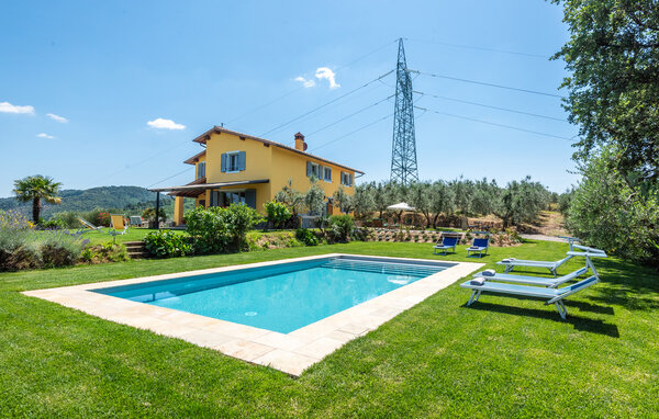 Prosto, ale atrakcyjnie urządzone pokoje mają okna z moskitierami. Rano można zjeść śniadanie na tarasie obok kuchni, gdzie można rozsiąść się wygodnie pod parasolem przy stole śniadaniowym i spojrzeć na basen, a z salonu z dużym kominkiem można wyjść na zadaszony taras z rozległym widokiem na dolinę Arno, gdzie można się zrelaksować i zakończyć dzień kolacją na świeżym powietrzu. Basen z tarasem słonecznym znajduje się również na dużej naturalnej działce z trawnikiem, gajem oliwnym i lasem. Wszystkie okna mają moskitiery. Odległości: mała wioska Moncione (sklep, restauracja) 1,5 km; Florencja i Siena 50 km, Arezzo i region Chianti ok. 35 km. Ośrodek jeździecki 2 km, pole golfowe 10 km.