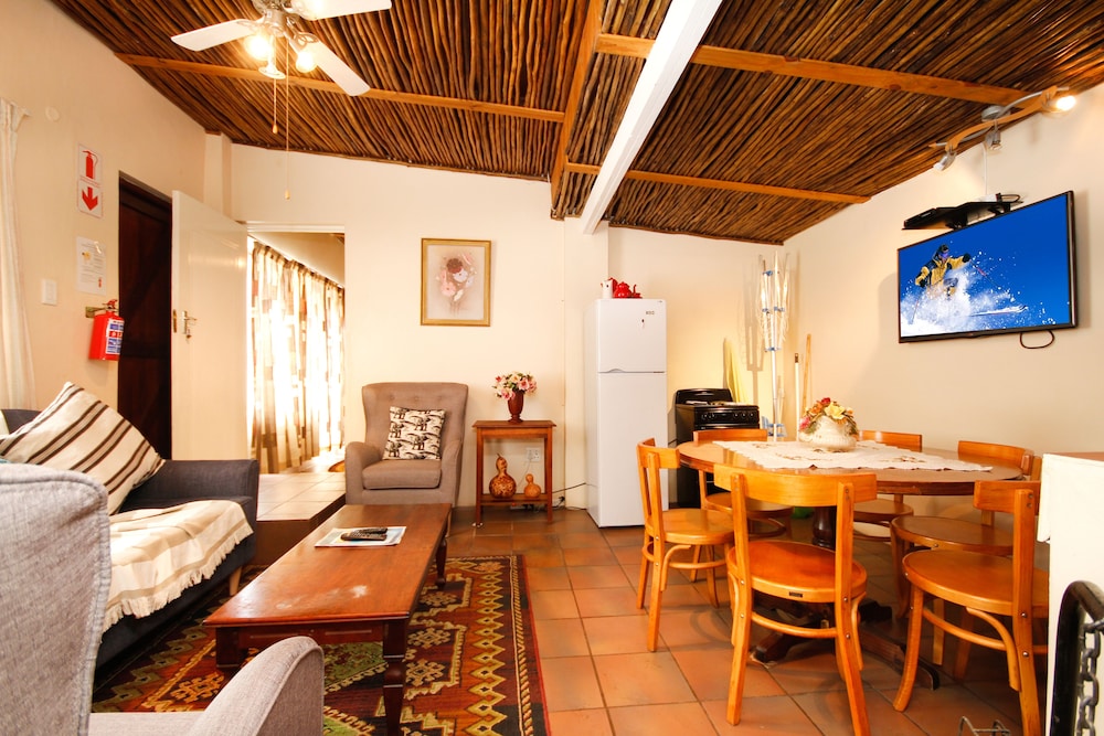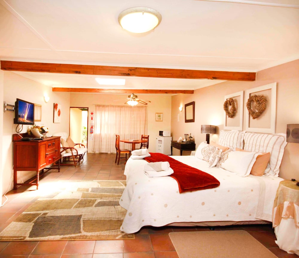 W czasie pobytu w obiekcie takim jak BOTTERKLOOF RESORT w mieście Still Bay znajdziesz się niedaleko plaży, pięć minut samochodem od atrakcji takich ja Gorzelnia Inverroche i Klinika Melkhoutfontein. Apartament znajduje się 3,3 km od atrakcji takiej jak Biblioteka Miejska Hessequa - Filia Melkhoutfontein i 3,3 km od miejsca takiego jak Biura Gminy Hessequa. Poczuj się jak w domu w 18 pokojach, których wyposażenie to lodówka i kuchenka mikrofalowa. Bezprzewodowy dostęp do internetu (płatny) zapewni łączność ze światem. Udogodnienia obejmują oddzielne strefy wypoczynkowe i czajnik elektryczny. Udogodnienia biznesowe to centrum biznesowe, personel wielojęzyczny oraz winda. Ten obiekt typu apartament zapewnia udogodnienia konferencyjne takie jak centrum konferencyjne i sale konferencyjne. Udogodnienia na miejscu to bezpłatne parkowanie samodzielne. Do pokoju przylegają taras i ogród, z których roztacza się piękny widok. Dostępne są również takie udogodnienia rekreacyjne, jak basen odkryty. Ten apartament oferuje takie udogodnienia jak bezprzewodowy dostęp do internetu (płatny), sklepy z pamiątkami i czasopismami i usługi weselne. Jakość oceniona przez Tourism Grading Council of South Africa (TGCSA) – oficjalną organizację ds. kontroli jakości w Republice Południowej Afryki.