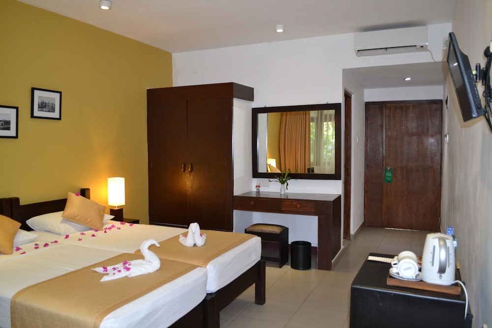 The Lakeside Hotel at Nuwarawewa znajduje się w mieście Anuradhapura, w dzielnicy historycznej i pięć minut samochodem od atrakcji takiej jak Szpital Kliniczny Anuradhapura i Muzeum Jetawanaramaya. Hotel (spa) znajduje się 2,6 km od atrakcji takiej jak Pałac z Brązu i 2,8 km od miejsca takiego jak Jetavanaramaya. Poczuj się jak w domu w 70 pokojach, których wyposażenie to minibar i telewizor LCD. Bezpłatny bezprzewodowy dostęp do internetu zapewni łączność ze światem. Prywatna łazienka — wyposażenie: prysznic, bezpłatne przybory toaletowe i bidety. Udogodnienia obejmują sejfy i biurka oraz sprzątanie codziennie. Udogodnienia biznesowe to komputer stacjonarny, ekspresowe zameldowanie oraz usługi pralni chemicznej. Płatne udogodnienia to transport z lotniska do hotelu (całą dobę) i odbiór gości z dworca kolejowego. Zrelaksuj się w spa, które oferuje masaż, zabiegi na ciało i zabiegi na twarz. Ten hotel oferuje udogodnienia takie jak bezpłatny bezprzewodowy dostęp do internetu, obsługa portierska i grill. Za opłatą do dyspozycji gości jest wahadłowy autobus kursujący do pobliskich atrakcji. W obiekcie takim jak hotel do dyspozycji gości są restauracja, a także obsługa pokojowa (w określonych godzinach). Zrelaksuj się po całym dniu w barze/salonie klubowym. Śniadanie pełne jest podawane codziennie od 7 do 9 za opłatą.