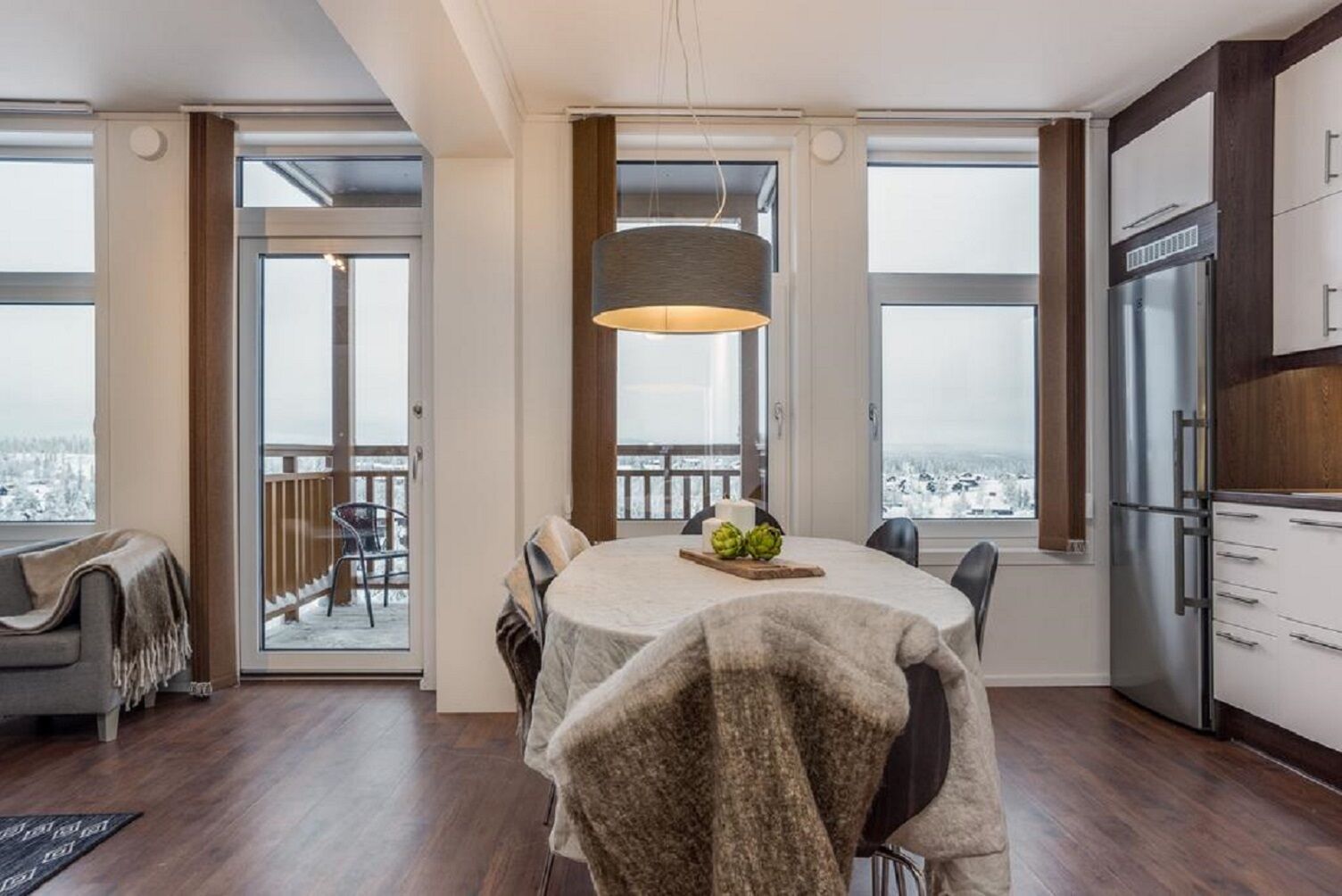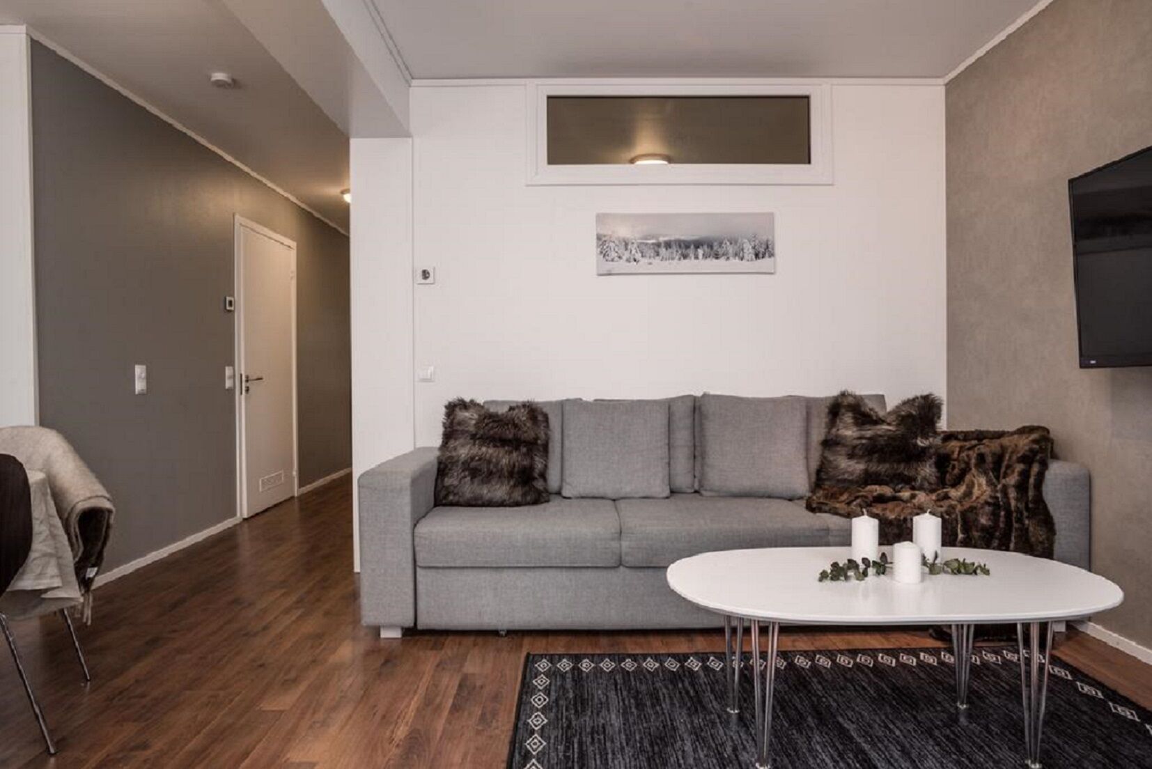 Komfortowe i dobrze wyposażone apartamenty o powierzchni 56 m². Apartamenty mają 6 miejsc do spania, rozmieszczonych w dwóch sypialniach. Kuchnia i salon mają przyjazny, otwarty plan z wyjściem na balkon/taras. W łazience znajduje się m.in. sauna.