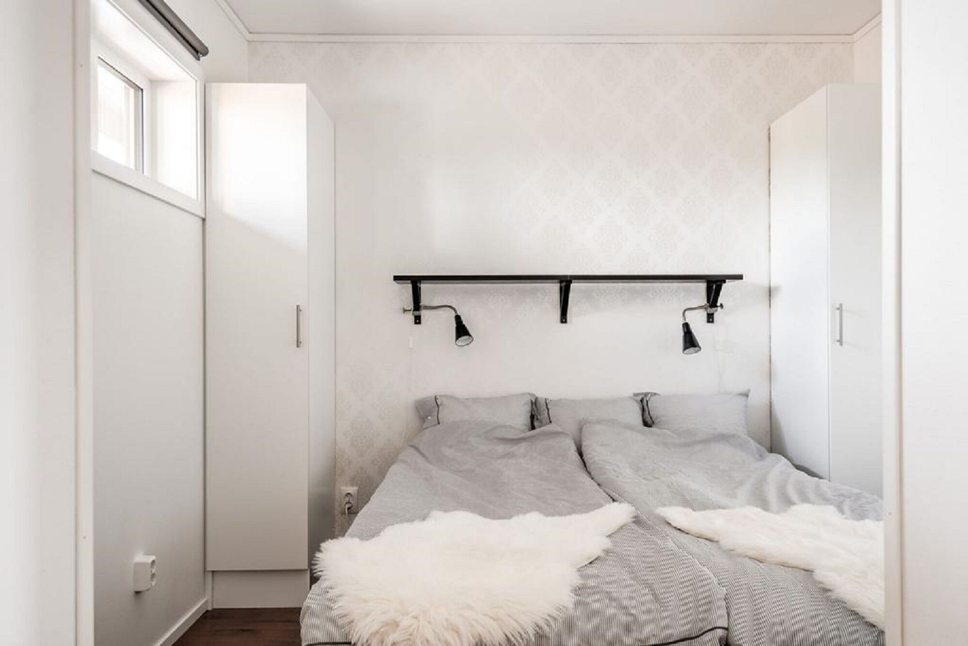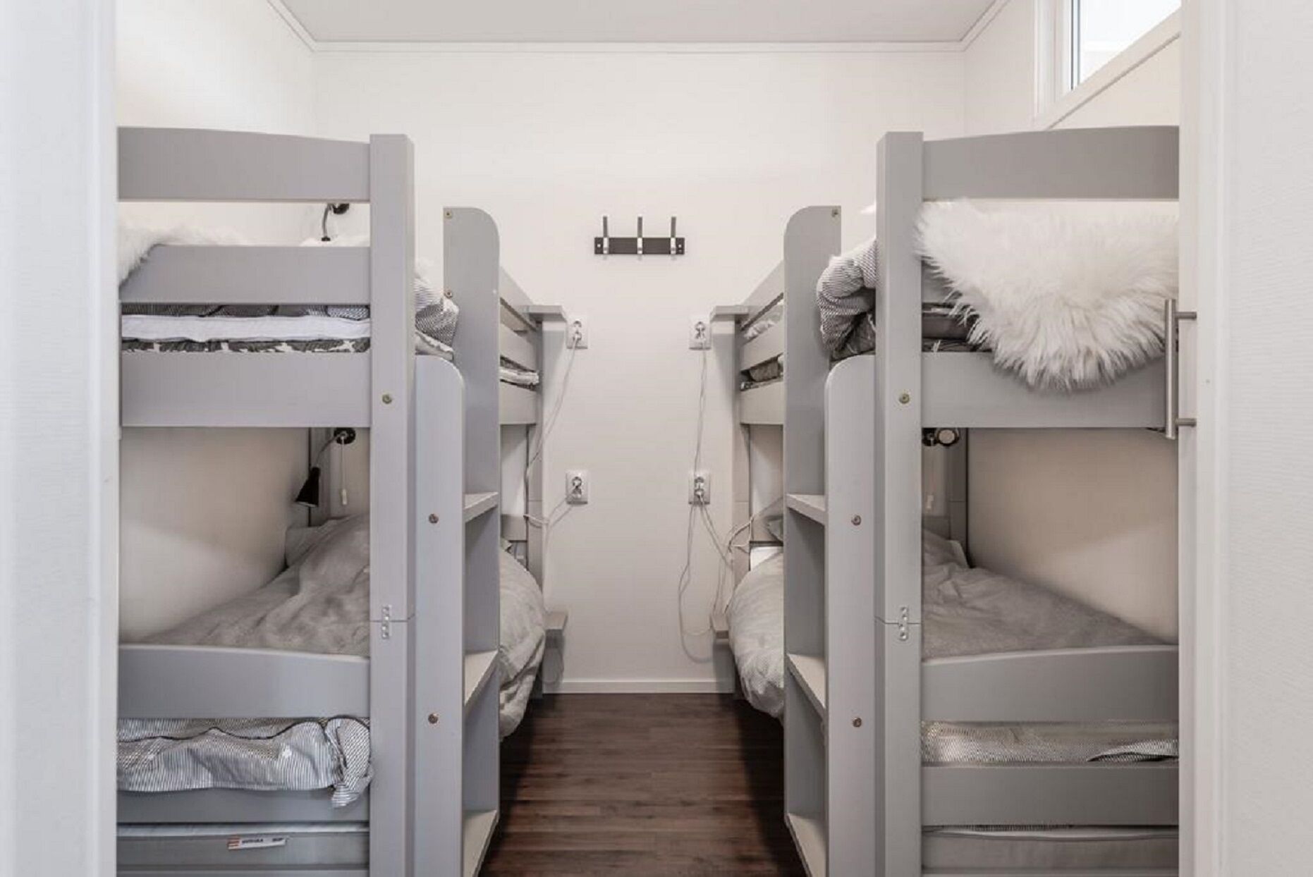 Sypialnie W jednej sypialni znajduje się łóżko dwuosobowe, w drugiej dwa łóżka piętrowe.